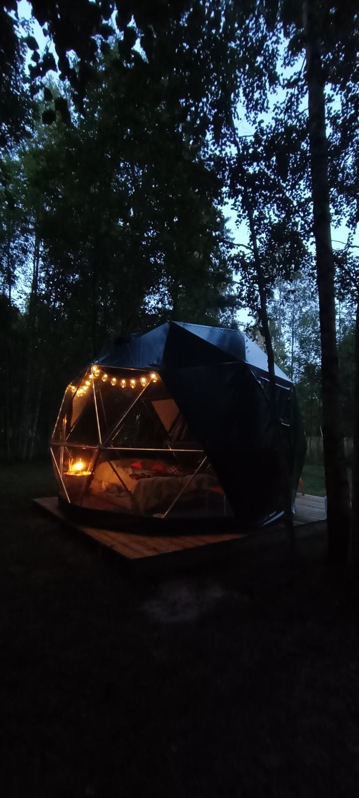 About this space Welcome to one of Latvia seaside’s hidden gem KurStrauti. Simple glamping retreat that will be most suitable for nature lovers and adventurers. The dome is located in a forrest enclosure near the sea, with a fireplace and cozy chill area. You’ll have complete privacy to yourself. We’ve made the place to be in symbiosis with nature so you can experience the best part of being in nature - relaxation, bird chirps as background track and sound of crushing faraway waves.