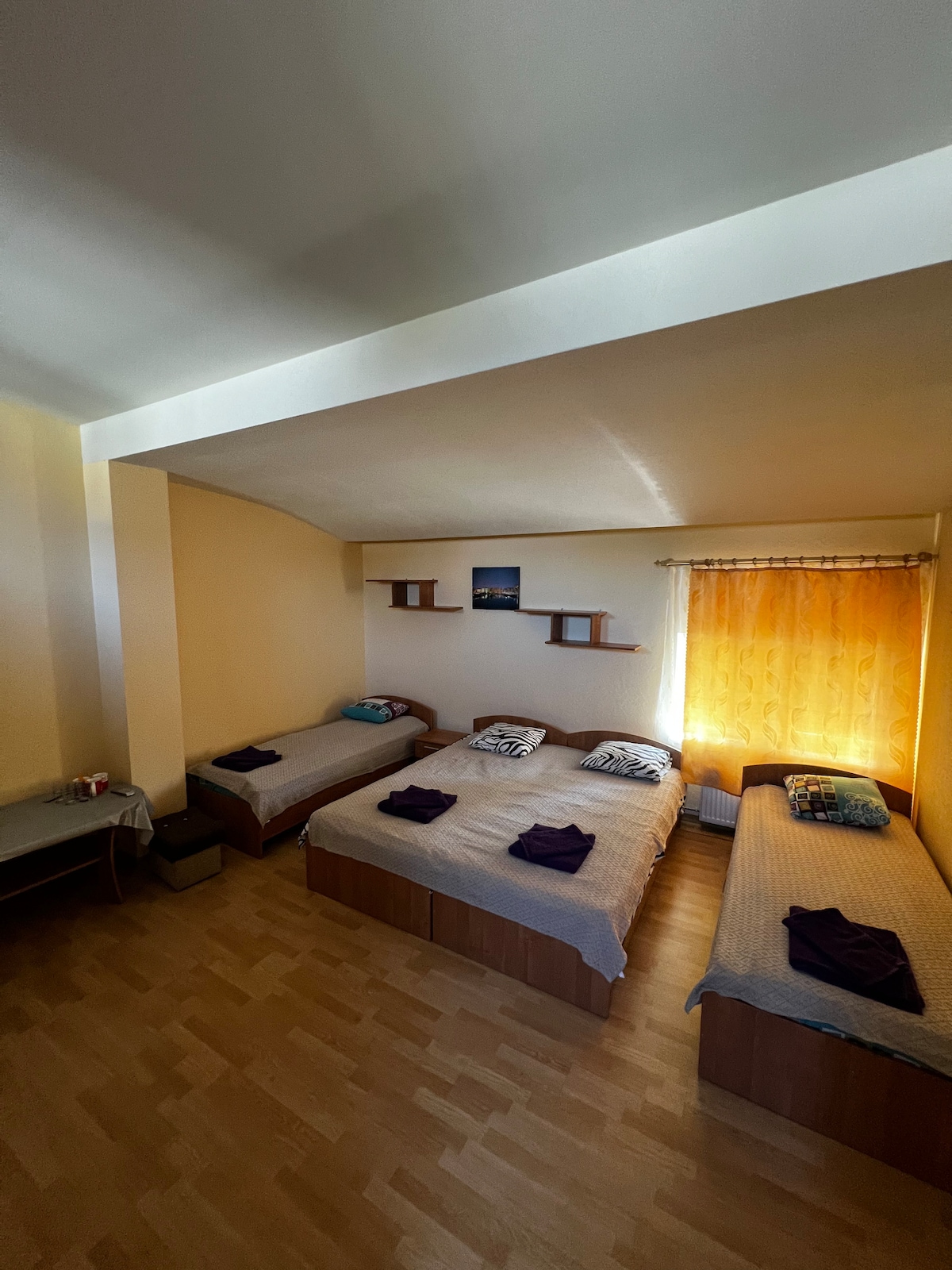 Two-storey guest house, located in an ecologically clean area, near the lake, 15 minutes by car from the center of Kuldiga city. The house has everything for a comfortable stay: 6 rooms, kitchen, 3 bathrooms, comfortable beds, wardrobe, wi-fi, refrigerator, electric kettle, dishes. The price includes bed linen, towels. For guests with a private car, parking is available. Suitable for family holidays, as well as business trips. Sauna and swimming pool is available on request.