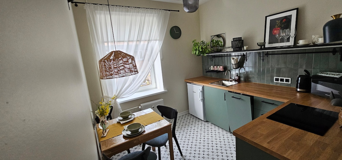 Spacious and bright apartment in historical building from 1870 in the heart of Kuldiga. Apartment is renovated in 2017. Combining old/new interior detailed touch. High ceilings and windows. Located in front of the park. Afternoon sun shines right in the windows. It has all you need for comfortable stay. Steps away from main square, pedestrian street and famous bridge over Ventas Rumba. ! There is no wifi- we believe-disconnecting from devices is the key for real connection with surroundings.