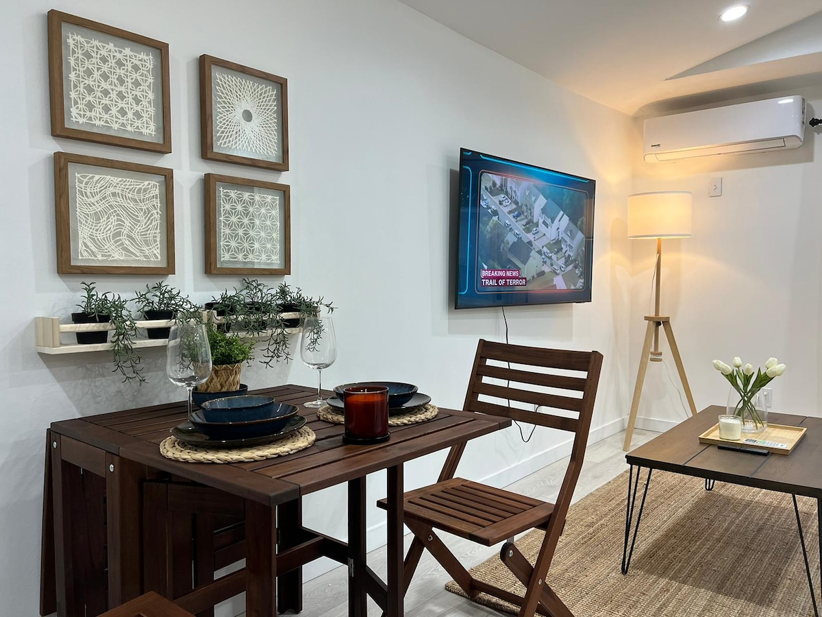 Tucked inside a 1960's Eichler home, this private retreat blends Midcentury design with modern ease. Unwind in the apartments king suite, enjoy hosting friends in your living room, or lounge by the firepit on your private patio. A retro kitchenette, acoustic insulated walls, smart amenities, and thoughtful design make it perfect for solo travelers or a romantic getaway for couples. Clean, quiet, and curated with care. This true 1 bedroom, 1 bath, + Living Room/Kitchenette is the perfect getaway.