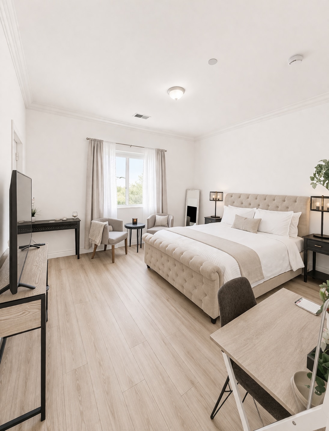 Welcome to The Daily Studio — a stylish & peaceful space in the heart of Camarillo! This studio is the namesake & former family residence of six-term Mayor and designated Mayor Emeritus, Stanley Daily. The design honors Camarillo's original City Council Chambers where the Mayor gave so much. Thoughtfully appointed to give you a comfortable stay while visiting family or on business. Amenities include fast internet, a kitchenette for light cooking, breakfast items, toiletry essentials, & laundry!