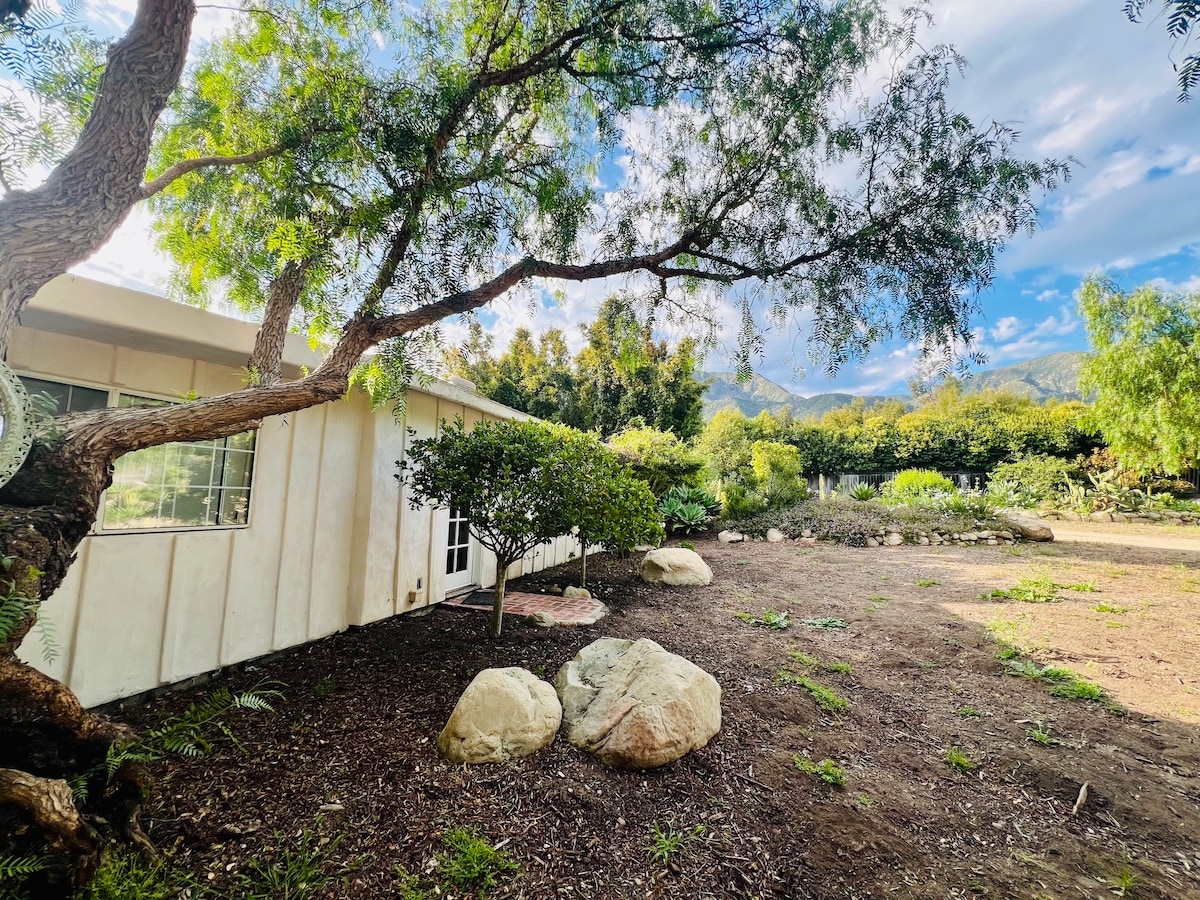 Take it easy at this unique and tranquil getaway. Our studio guest house is tucked away in the hills above Newbury Park with quick access to town for shopping or restaurants and located a short walk from the Rosewood Trailhead with access to thousands of acres of dedicated hiking and biking open space. Enjoy a private patio with beautiful views and peaceful spaces to enjoy outdoor. We live on property in the main house so additional amenities can be provided to make your stay personalized.