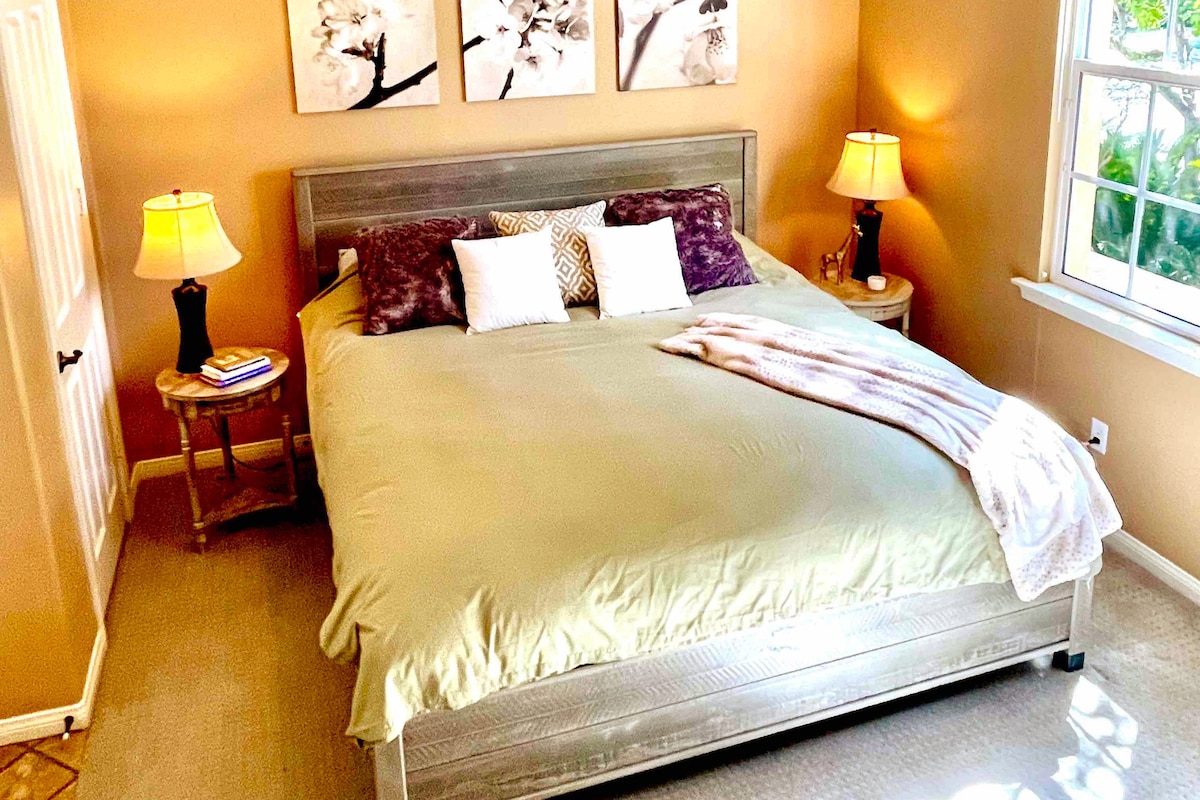 Looking for a more private and homey stay? Experience a hidden nook filled with airy designer décor. This private-attached studio dwelling is a luxury space, equipped with smart home features and devices, designated parking, private entrance, A/C, and self Check-In. Hide away from the everyday hustle in a perfect town surrounded by nature, comforting restaurants, and designer shopping outlets. Transportation through the Metrolink and Amtrak is located just a few blocks away.