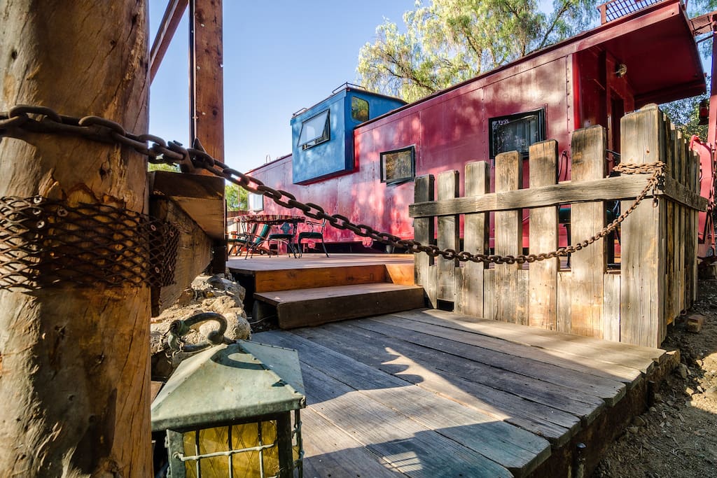 All Aboard for Romance & Adventure! Your Private Orient-Express Caboose! Vintage charm meets modern comfort in this restored train caboose tucked in the Agoura Hills. Cozy hideaway for two with velvet/wood/mountain views, and starry nights. Think Orient Express meets California mountain retreat. Wake to golden light and birdsong, relax under the California trees, and enjoy tranquility, and storybook charm, just minutes from Malibu beaches, hiking, wineries, and historic ranches.