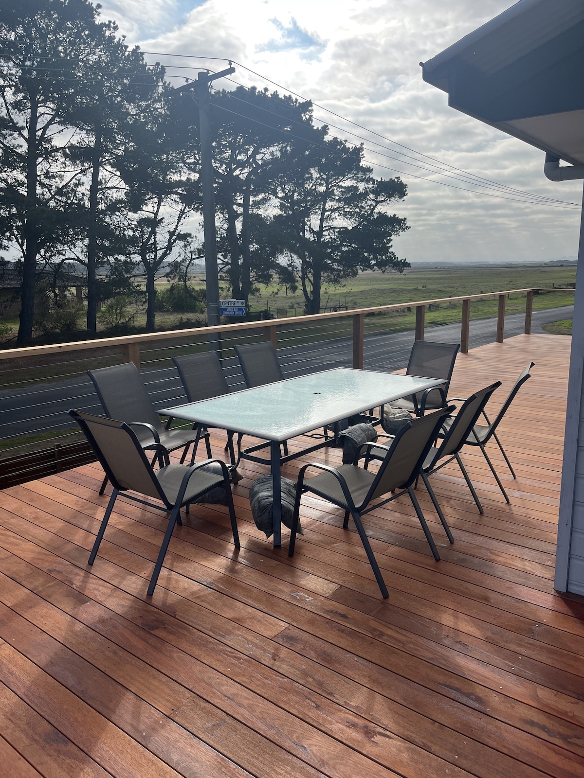 A spacious and modern 3 bedroom home, with beautiful uninterrupted views from a brand new decked balcony to Anderson Inlet Perfect for up to 2 families, with two separate living areas, one with multiple gaming consoles and a Fussball table A 5 minute walk to the shops/eateries and a 15 minute walk (3 minute drive) to the patrolled surf beach A perfect space for anyone to get away and unwind in the true peace and quiet of Venus Bay Unlimited high speed WiFi All bed linen and towels provided