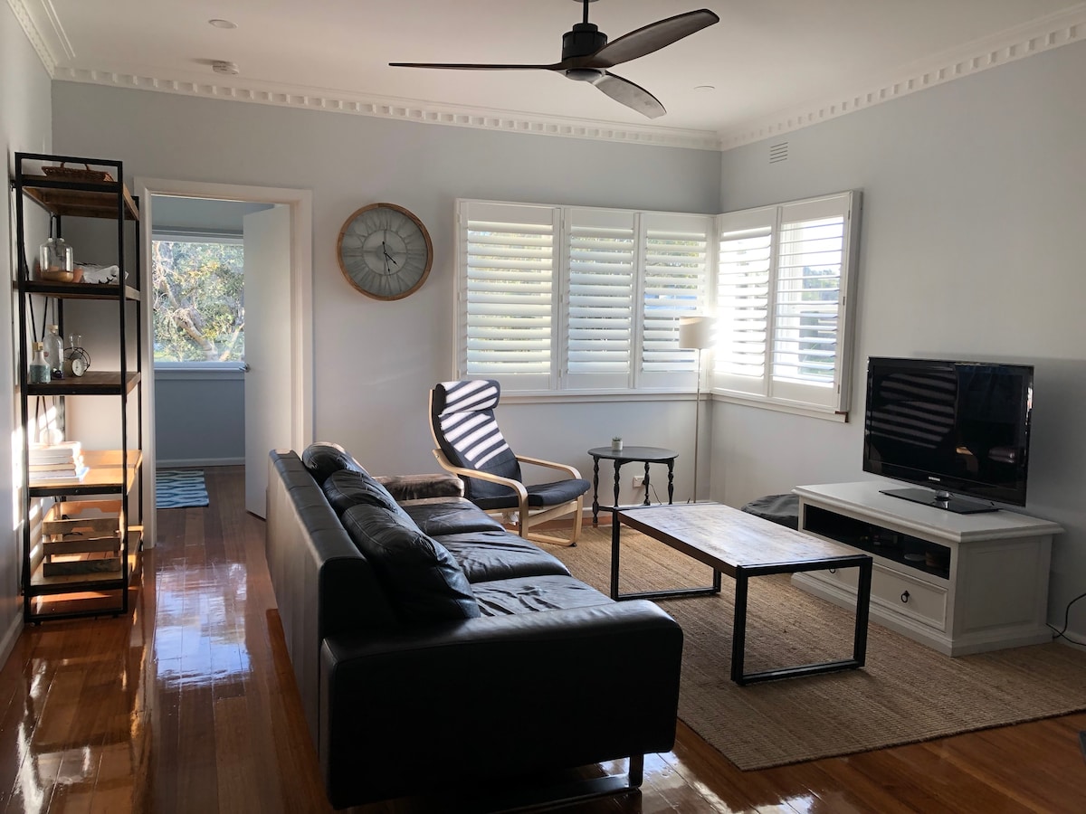 10 minute walk to beach. Comfort awaits those who roost at Venus Bay’s original 50’s two bedroom beach house - with a full modern restoration. Free Linen, Firewood, Netflix, A/C, Wi-FI - all included; you're on holiday! Min 5 nights for summer holidays. Stylish modern kitchen & appliances, easy to connect tech & inviting light filled spaces. Compact in size, generous in vintage vibes. The Rookery is a perfect romantic retreat, double couple fun, or small family escapade. Dogs welcome!