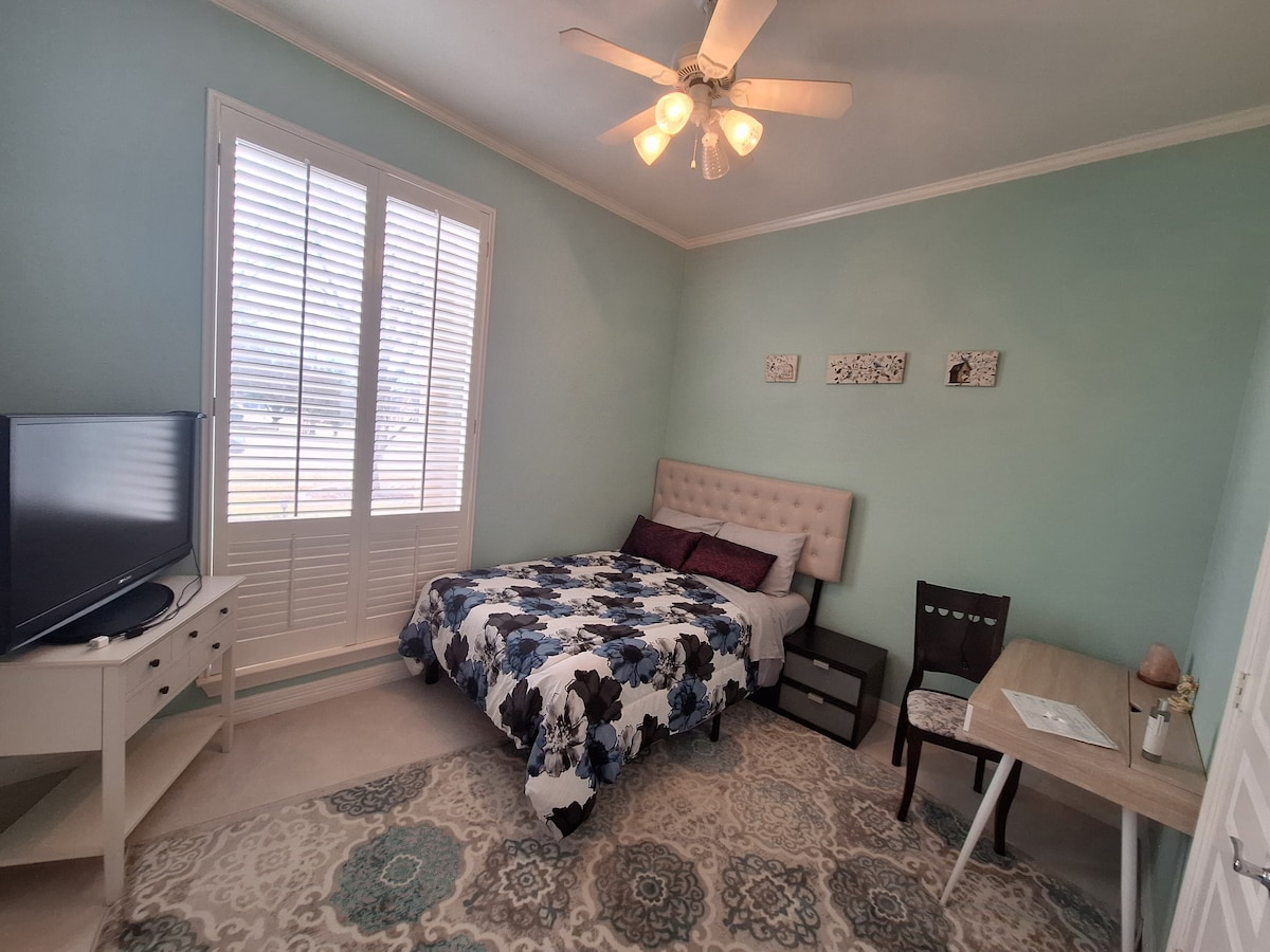 Kick back and relax in this calm, stylish space. Inside a gated community, right next to a peaceful creek, this 1BR/1BA has everything you need for a long-term stay or a quick night getaway. A full kitchen with complimentary coffee, pop-up couch, digital fireplace and in-unit laundry make it a perfect getaway. This private guesthouse is ready for you! We take pride in making you feel like home away from home. Private entrance lets you come and go freely.