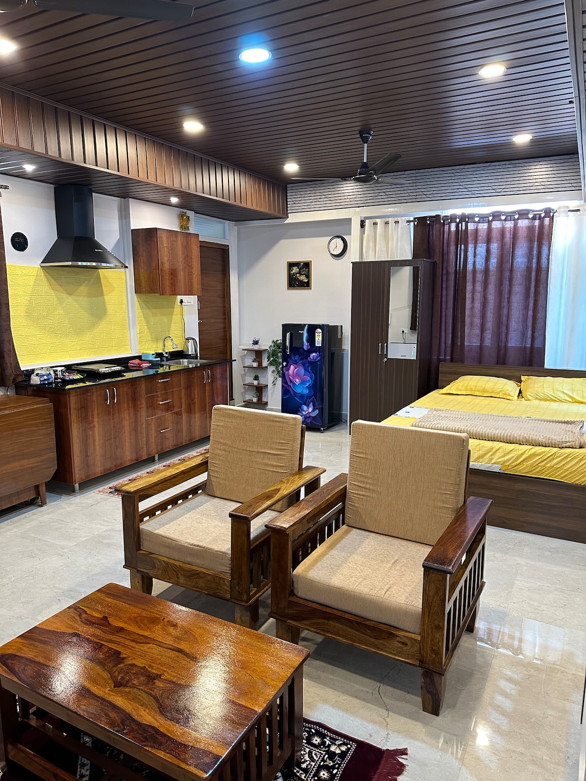 Welcome to The Cave! A fully furnished studio, perfect for couples, families, or solo travellers who love a homely yet modern space. ✨ What you’ll love: -Queen bed for 2 adults + 1 child (extra mattress available for 2 more guests) -Open kitchenette -Outdoor sitting area for your morning coffee or evening unwind 🚫 Note: NO car parking available. Comfortably fits upto 3 adults. Located close to Bagmane Tech Park & Indiranagar, this stay blends calm residential vibes with quick city access.