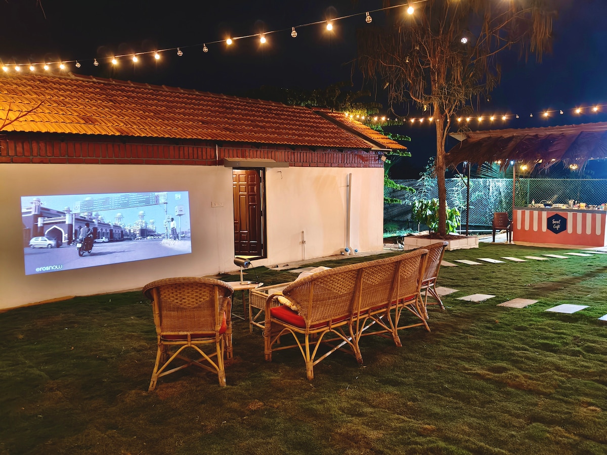 Escape to this high-tech 2BHK retreat just 1hr from Bangalore! Perfect for workcations, parties, or romantic stays. Highlights: 🏊 Private Pool: 20x12ft pool + 300sqft lawn. 🎬 Movie Nights: Projector in patio + Smart TV. 🔒 Total Privacy: Automatic gate & extended walls. 💻 Work-Ready: High-speed Wi-Fi & Air Purifier. 🍳 Full Kitchen: BBQ, Fridge, Microwave & RO water. Food delivery via Swiggy/Zomato. Pets welcome! 🐾 Quiet Hours: 10PM-6AM