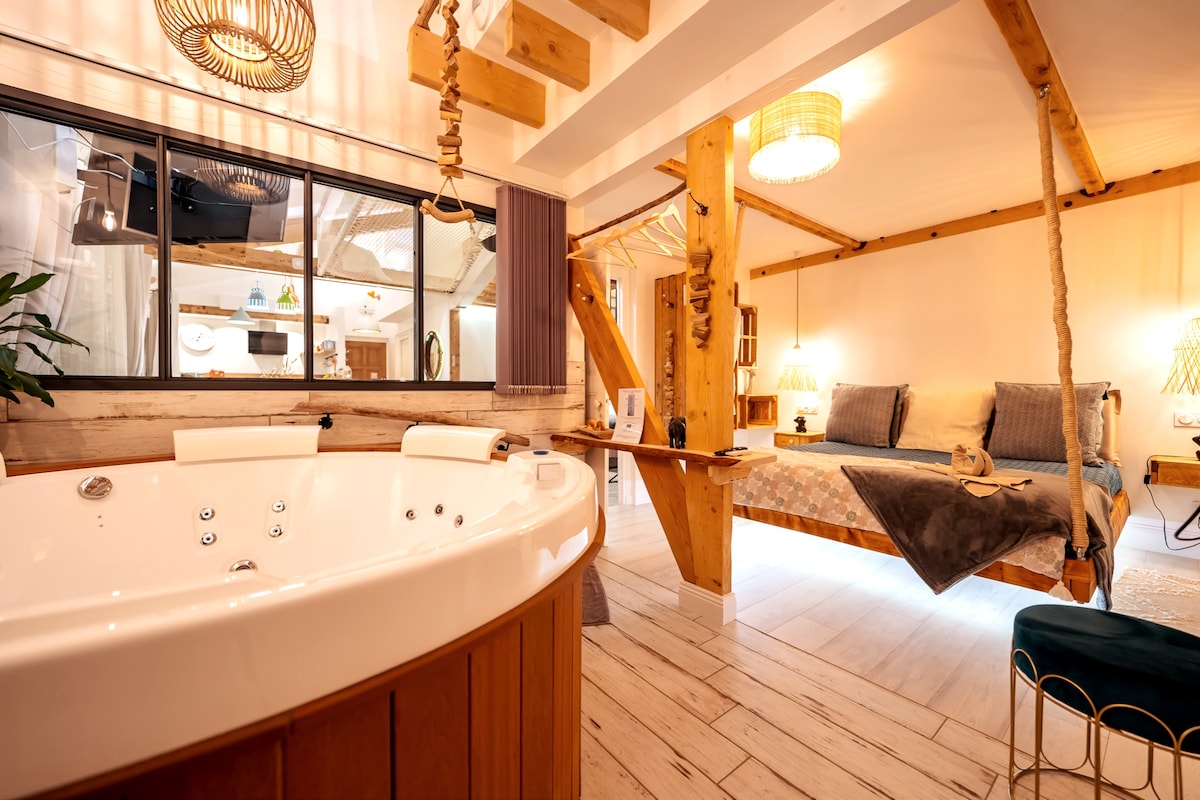 Soyez les bienvenus dans ce charmant appartement entièrement rénové dans une résidence du XIXe siècle. Vous serez charmés par sa décoration et ses équipements. Idéal pour une ou une plusieurs nuits de détente. Que vous soyez solo ou en duo, nul doute que vous y passerez un agréable moment. A votre disposition: - une sauna 2 places - un jacuzzi pour 2 « face à face » Vous aimerez également la TV connectée, la douche à l’italienne, et toutes les petites attentions qui vous attendent.