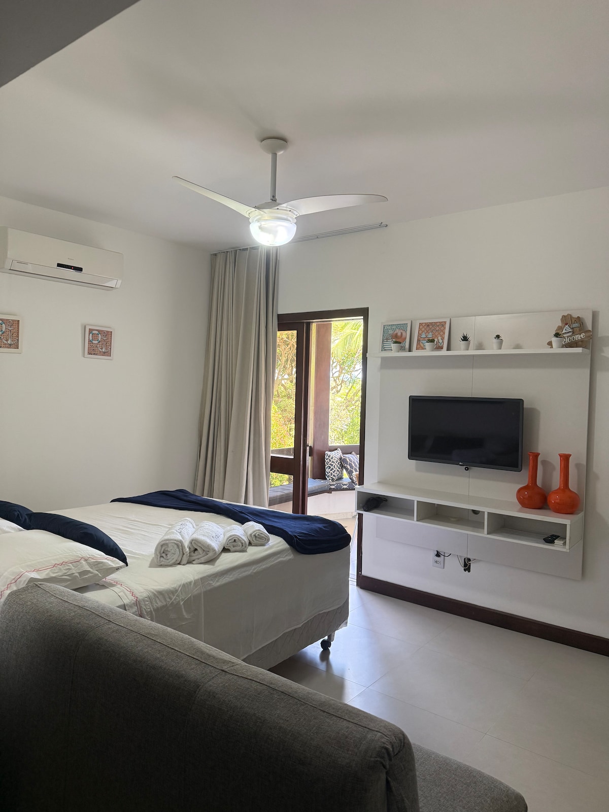 Come stay in one of the best beach in the Island! Ideal for couples with kids, this one bedroom apartment has a living room, full kitchen with utensils, bedroom, bath, and a laundry area inside the unit, with full infra-structure for your family's vacation. Conceição beach is naturally protected by coral reefs, providing calm and crystal clear waters. The unit is inside a closed community with private beach access, and 24 hours security. We speak English!