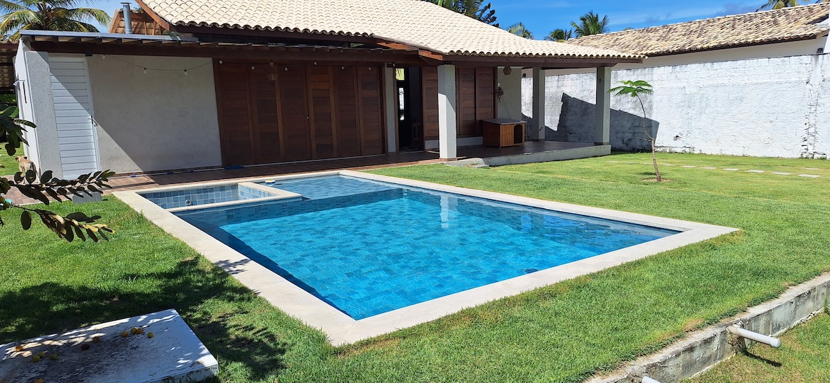 Refúgio de Luxo: 200 metros da Praia com Piscina e Banheira de Hidromassagem Privativa. O lugar perfeito para desconectar e renovar as energias. Com uma decoração moderna com ambientes iluminados, nossa casa é um convite ao relaxamento. Estamos a 2 minutos de caminhada do centro comercial e praça. Nossa casa fica em condomínio, vigilância 24h seu pet bem-vindo (máximo 02 pets).