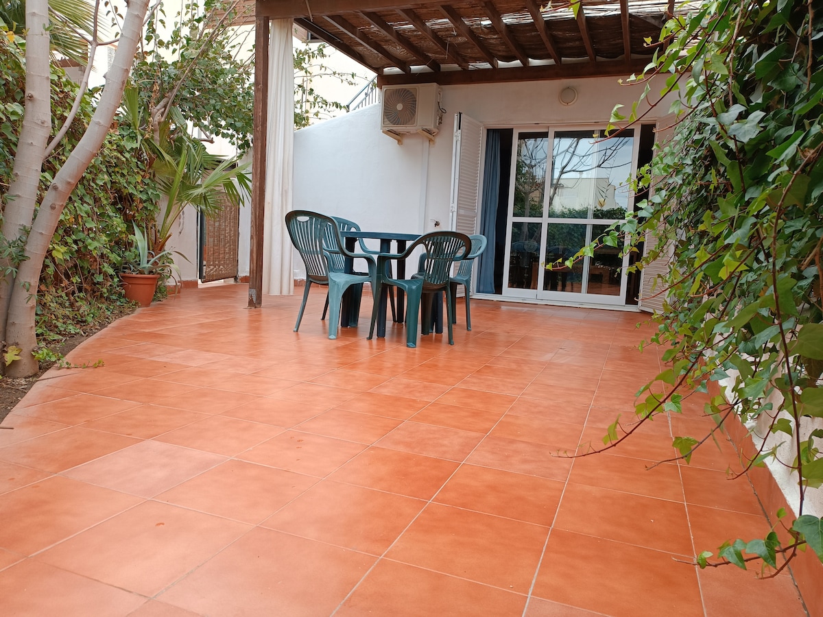 Precioso y completamente renovado apartamento bajo en Vera Playa, a 150 metros de la playa. El apartamento consta de habitación matrimonio, habitación con 3 camas, cocina completa, salón, 2 baños completos, terraza y dos patios para relajarse, uno con acceso a la piscina y zonas comunes, y otro interior. A/C en toda la vivienda, plaza garaje.