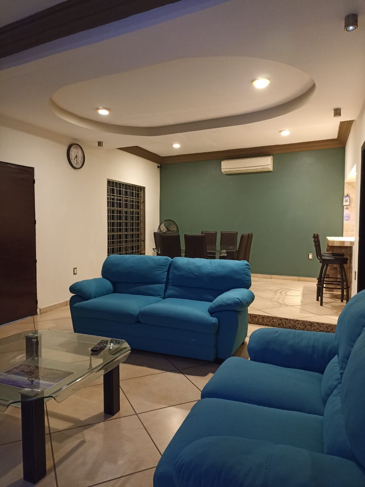 Departamento en planta baja , habitaciones climatizadas rodeado de atractivos turísticos, restaurantes, plazas comerciales , museos, a 3 minutos de playas y a 2.5 km del Acuario de Veracruz (A una cuadra del Carnaval y maratones) -Sala y comedor con smart tv, cocina integral con vista a un pequeño jardín central privado. -Recamara principal con cama king size , baño, vestidor y smart tv. - Recamara secundaria con cama matrimonial y closet. -Garage para un auto con portón eléctrico.