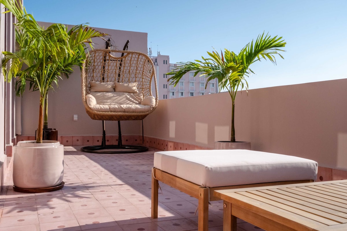 Casa Bamba no es un Airbnb más. Es el mejor lugar para quedarte en el corazón del Centro Histórico de Veracruz. Este alojamiento combina diseño, lujo y descanso real, a solo una cuadra del Zócalo y los Portales, pero con silencio total para dormir. La experiencia se siente desde que entras: acabados artesanales, interiorismo de autor y una atmósfera que evoca el Veracruz antiguo con un enfoque contemporáneo y elegante.