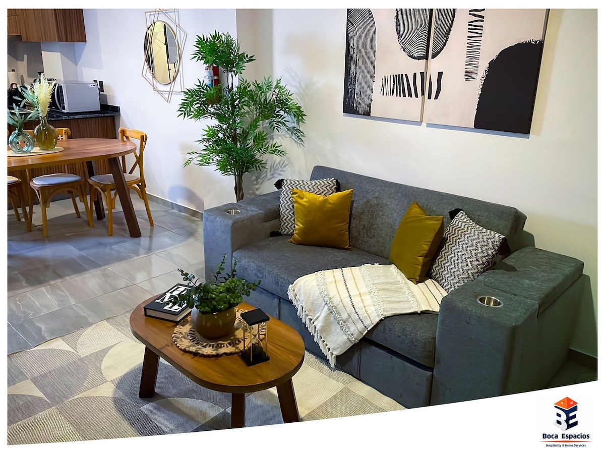 Hermoso y nuevo departamento en una excelente ubicación. Se encuentra a dos cuadras de la plaza urban center donde hay un chedraui selecto, hospital, restaurantes y demás tiendas. A 1 Cuadra de la de av costa verde, en la cual hay farmacias, restaurantes y más. Súper cerca de los estadios, y a 10 mins de los centros de veracruz y boca del Río. Equipado con colchones emma y almohadas emma, así como ropa de cama de la mejor calidad. Te sentirás como en casa.