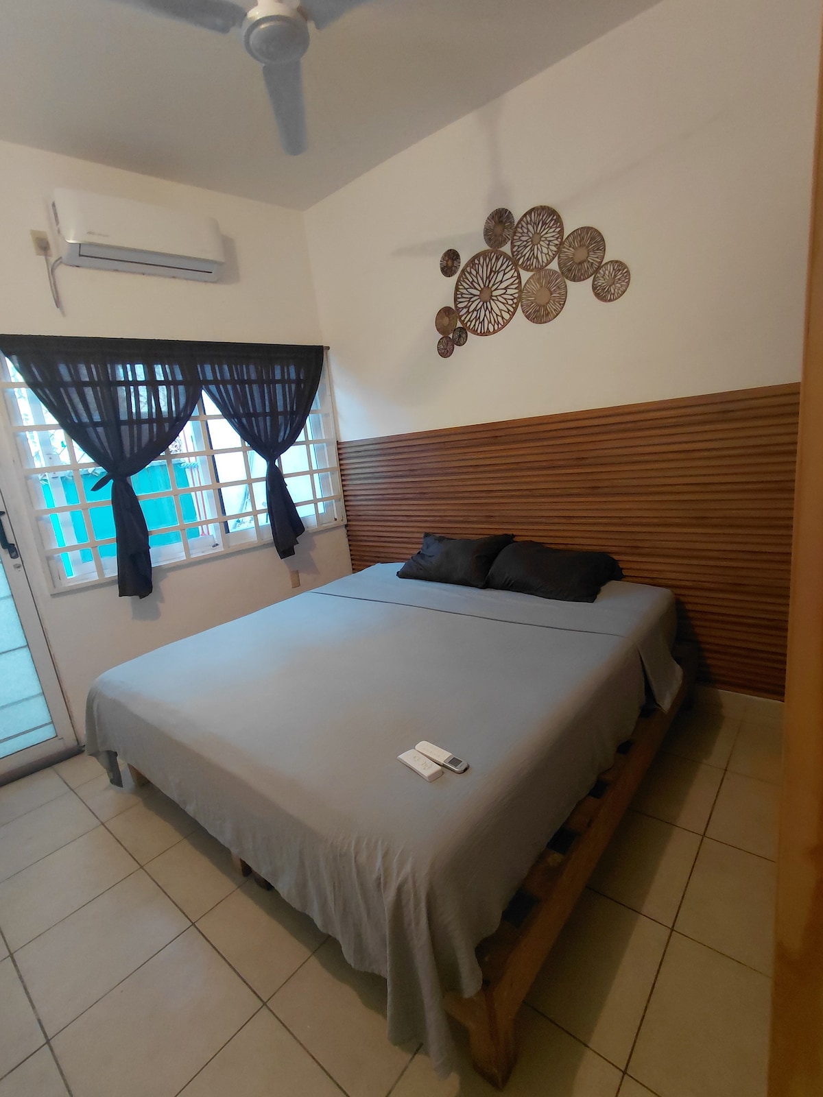 Departamento en planta baja , habitaciones climatizadas rodeado de atractivos turísticos, restaurantes, plazas comerciales , museos, a 3 minutos de playas y a 2.5 km del Acuario de Veracruz (A una cuadra del Carnaval y maratones) -Sala y comedor con smart tv, cocina integral con vista a un pequeño jardín central privado. -Recamara principal con cama king size , baño, vestidor y smart tv. - Recamara secundaria con cama matrimonial y closet. -Garage para un auto con portón eléctrico.