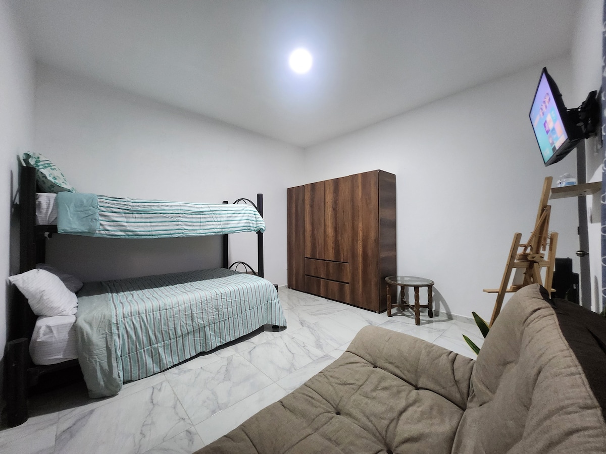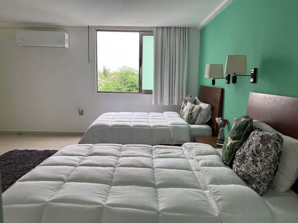 Vive la experiencia del puerto de Veracruz en nuestra acogedora suite, con fácil acceso a playas, zócalo, malecón, acuario y los principales atractivos turísticos de la ciudad