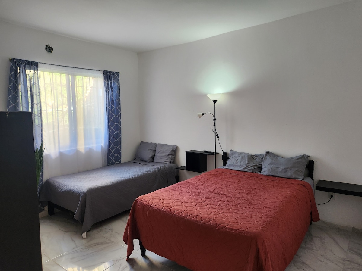 Relájate con toda la familia en este alojamiento donde la tranquilidad se respira. Esta habitación se encuentra alado del Jardín, donde podrás experimentar un amanecer con el cantar de los pájaros.