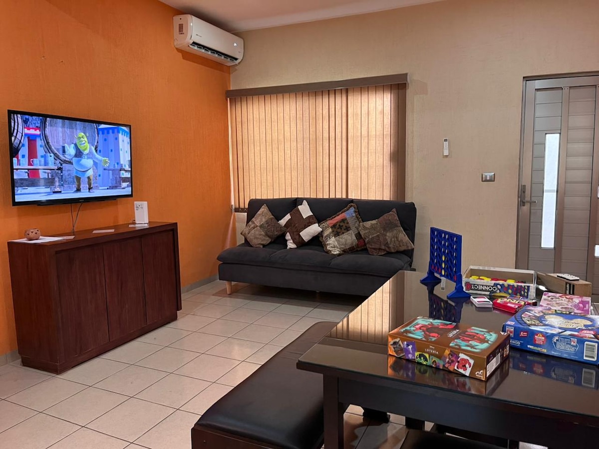 Relájate con toda la familia en este alojamiento donde la tranquilidad se respira a 2 cuadras de la playa, 3 minutos de centros comerciales, del WTC, boulevard, centro de Boca del Rio y mejores mariscos de la zona. Con todos los servicios de Internet, aire acondicionado y comodidad.