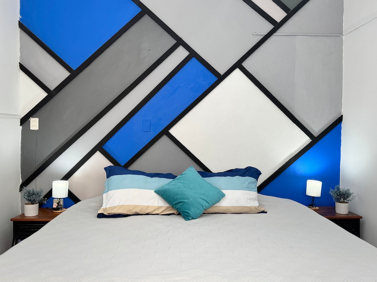 Limpieza profunda antes de cada reservación y desinfectada con producto certificado por COFEPRIS. Dispensadores de gel antibacterial en las áreas comunes. Espacio cálido y hogareño, con servicios para permanecer estancias largas y sentirte como en casa. Cuenta con una cama matrimonial, baño propio, aire acondicionado, closet, cocina equipada con cafetera, parrilla eléctrica, refrigerador, vajilla, microondas y plancha. NO CONTAMOS CON ESTACIONAMIENTO