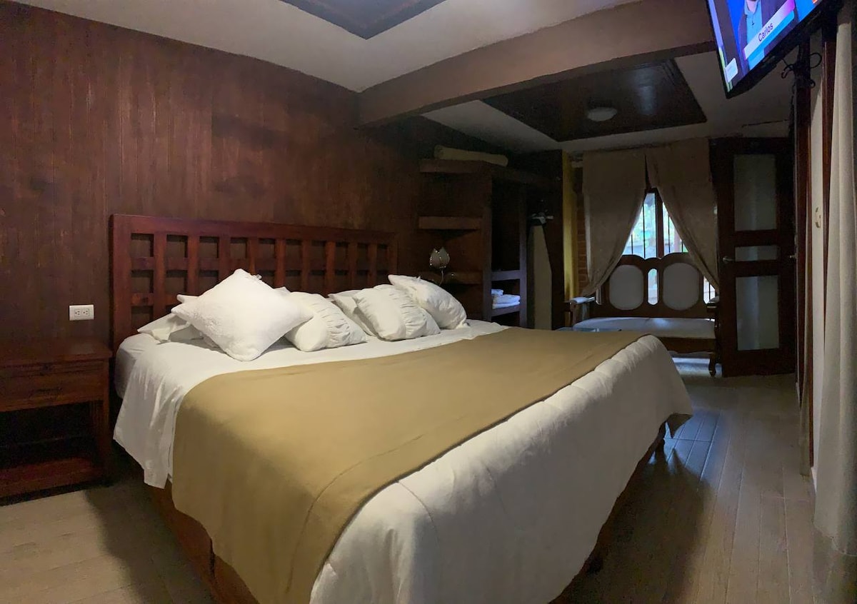 habitación confort le ofrece un espacio rústico, único y familiar, muy romántico, lleno de naturaleza donde puede relajarse, y disfrutar de nuestros bellos espacios en compañía de su pareja o de su familia. La habitación le ofrece un jacuzzi para 2 personas, cama King Size, baño exclusivo para la habitación, y cocina completa para preparar sus alimentos, además contamos con restaurante y servicio a la habitación. Nuestro hotel tiene áreas verdes que puede disfrutar. Contamos también con spa.
