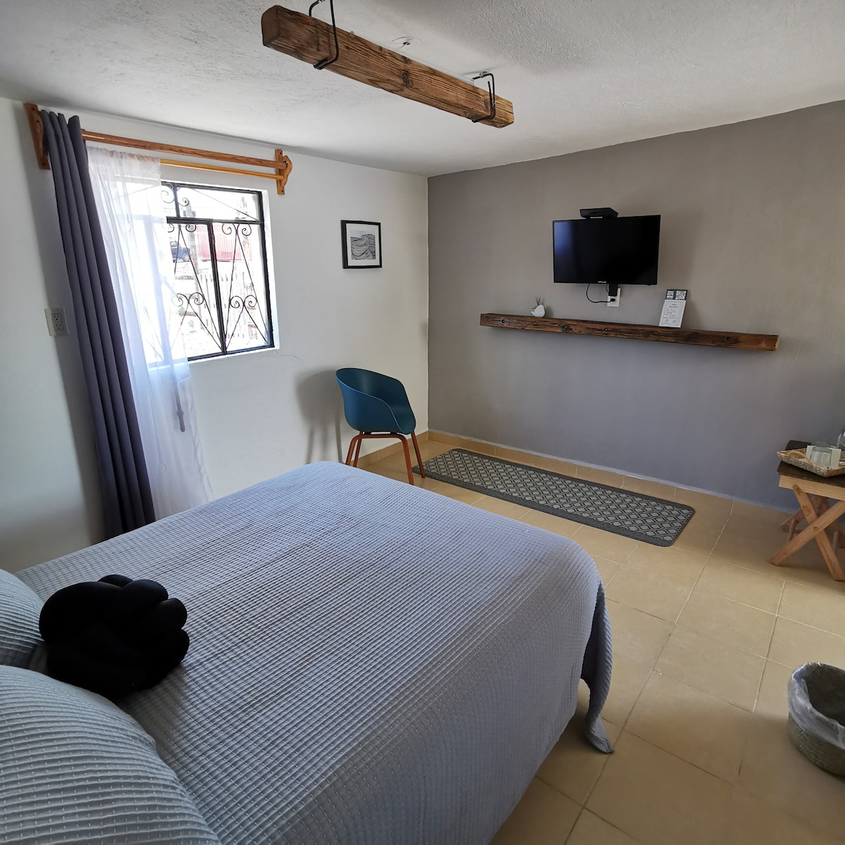 PLANTA BAJA Cama queen amplia y acogedora. Internet con alta velocidad. Closet y equipo de planchado. Baño completo. ESTACIONAMIENTO INTERNO Nos encontramos a 10 minutos de los Fuertes de Loreto, 5 minutos de San Francisco, 4 calles de los dulces de Puebla y 7 cuadras del Zócalo de Puebla.
