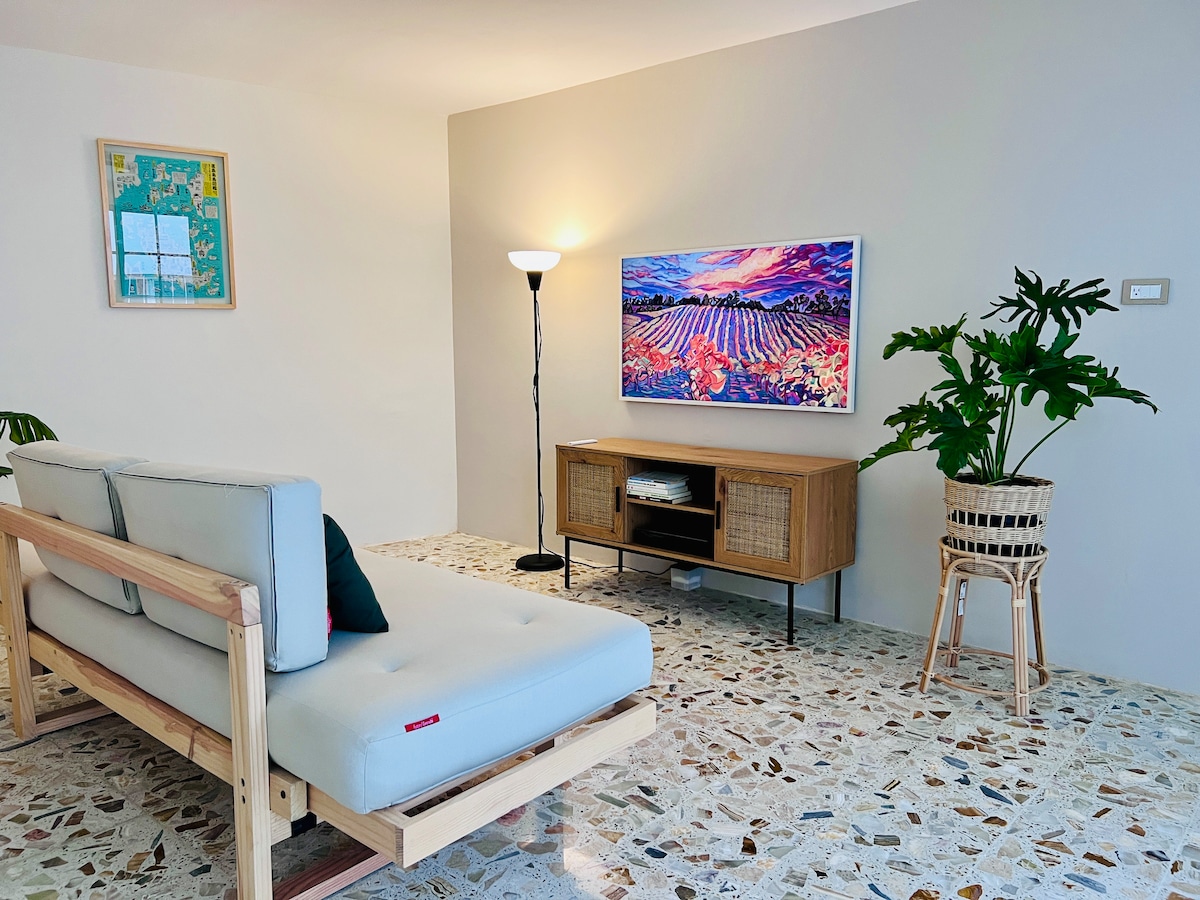 全新的海滨公寓,有空调,我们收费