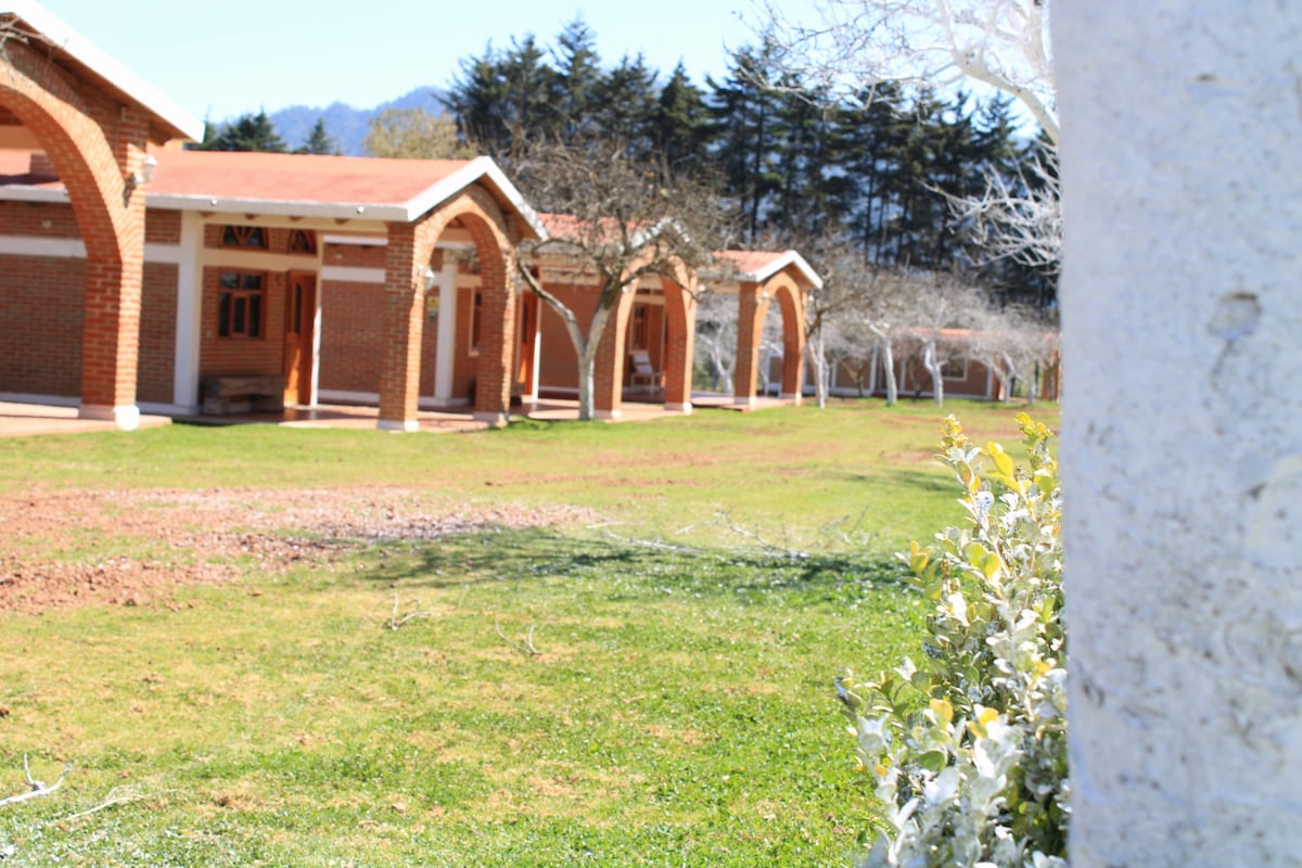 Descuento solo mes de Junio. A solo 10-15 minutos del centro de Zacatlan de las manzanas. Disfruta de la naturaleza y olvídate del estrés . Aprovecha de la magia del bosque, el rió, una presa y huertos frutales en nuestro tour, en un camión eléctrico por todo el Rancho. CONTAMOS CON 11 CABAÑAS. Si en este anuncio ya no fechas disponibles, por favor busquen los demás anuncios de nuestras cabañas para que los deje reservar, o manden un mensaje y con gusto los atenderé