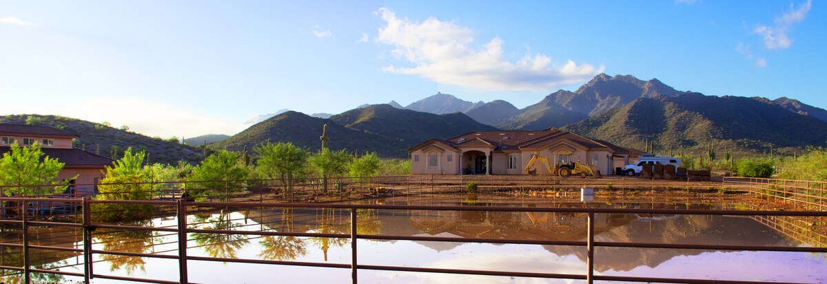 Large guest suite (bedroom & bathroom), with private, electronic keyed entrance from patio looking out on pool, Jacuzzi & pristine views of majestic mountain sunrises and desert landscapes. Portable induction cooktop, microwave, small refrigerator, coffeemaker, table & chairs. Large bathroom with double sink, shower & separate soaking tub. Sitting area for reading, entertainment center with large screen smart TV & internet access. Shared backyard and patio with tables, & BBQ for alfresco dining.