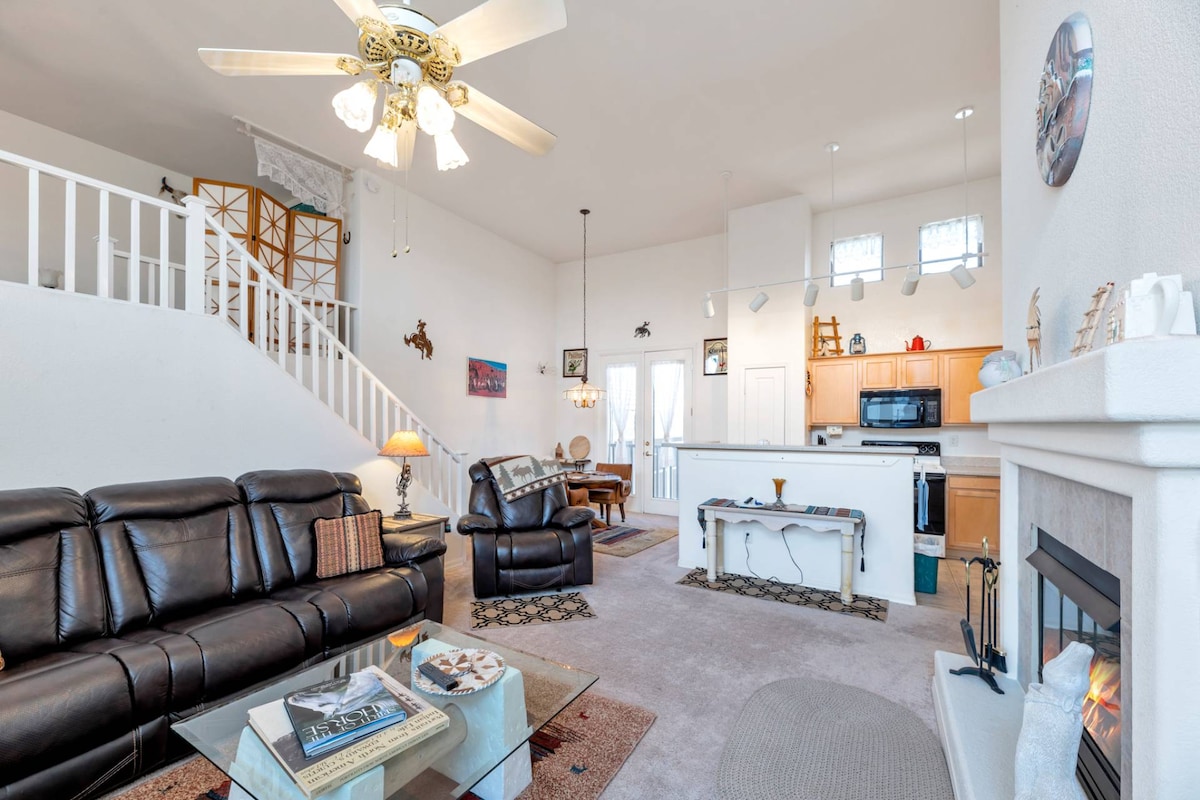 If you looking for a tranquil place in Sedona near downtown, then look no further. Close to restaurants, grocery stores, hiking, biking, shopping, parks and so much more. The neighborhood is very quiet and nice. Dogs and cats love the area as well! In the master bedroom you’ll see a king bed. The bathroom is just around the corner. There is a wonderful kitchen with everything you’ll need to cook a meal. The living room is amazing! The couch is so comfy especially next to the fireplace!