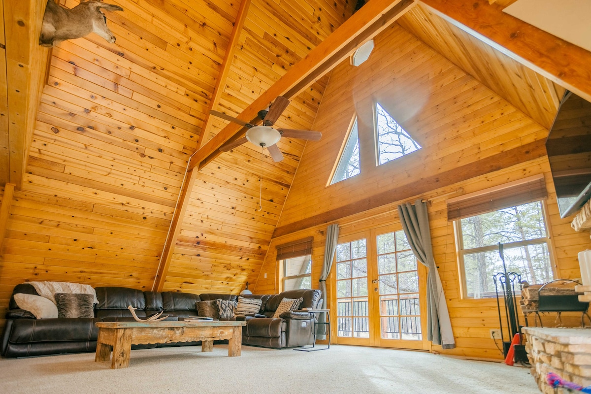 Escape to this charming 3-bedroom, 2-bathroom A-frame cabin in the heart of beautiful Payson, AZ. Thoughtfully designed for comfort and relaxation, our cabin offers the ideal mountain getaway. Unwind in the picturesque backyard—grill up your favorite meals or roast marshmallows under a star-filled sky. Hike, bike, or kayak by day, then relax on the couch with a book or glass of wine in the evening. Enjoy a game of cornhole in the yard or the beauty of nature from the front porch.