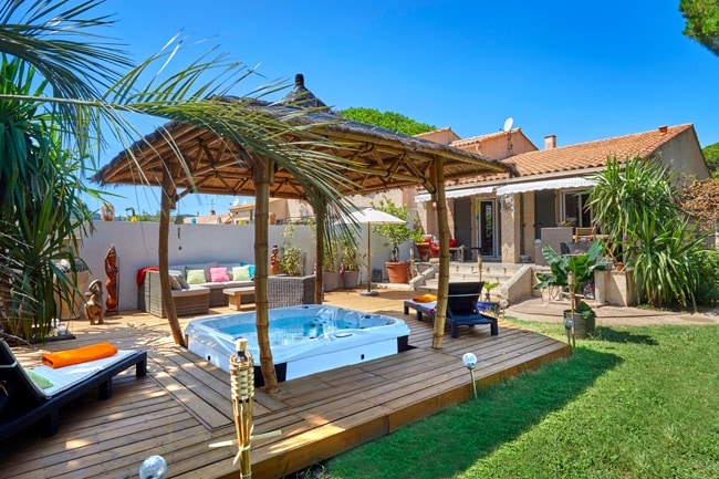 Between Ste Maxime and St Raphaël, near a sand beach and the front of St Tropez gulf, villa for 4 persons located in a residential district, in few minutes in feet to the sea. "Cocooning" and "relaxing" ambiance, with larges terraces, Spa, Sauna, "pétanque" .... Its an invitation for relaxing you Ideal place for pleasant holidays and enjoying comfortable summer