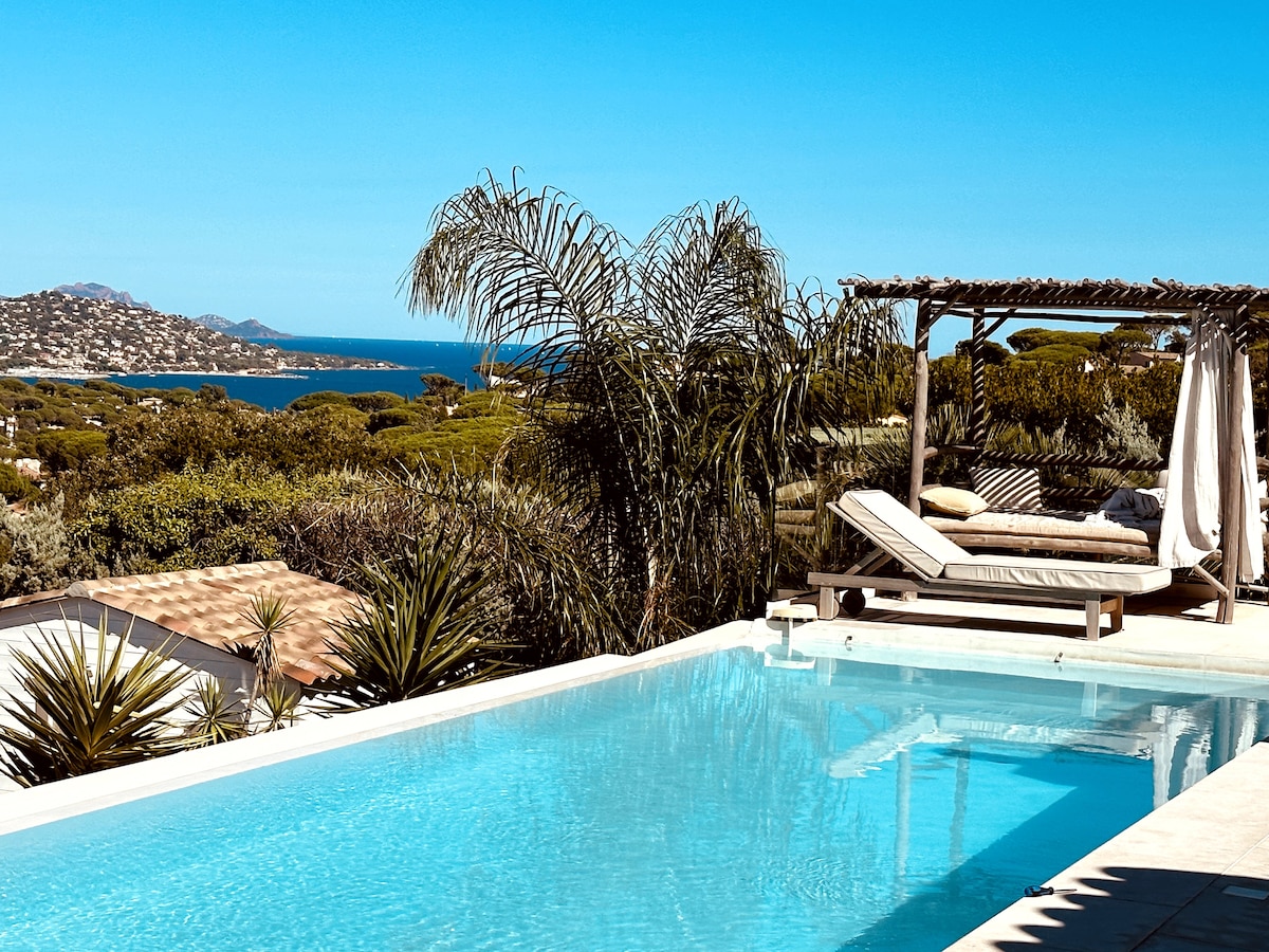 Idyllically located villa in quiet surroundings, in a gated domain on the French Riviera, with panoramic views of the Mediterranean Sea. Enjoy the view and find your peace of mind on the spectacular pool area with 12x6 meter heated pool and bar kitchen. Villa Le Trayas Supérieur has a large garden with many idyllic areas. Meals can be enjoyed in the gardens barbecue area by the main indoor kitchen. La Figuerette sandy beach with cozy restaurants, bars and watersports in the bay below the villa.