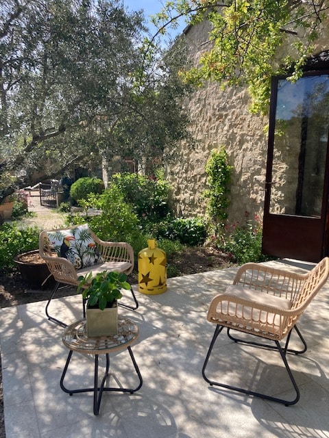 A charming small bastide with a nice wooden terrace facing south. A secluded bedroom with the oak tree in the patio. Absolutely quiet and sunny. Great to enjoy festivals and places like: Arles, les Calanques, Marseille, Verdon. Great for a couple. Infant welcome (<2 years old)
