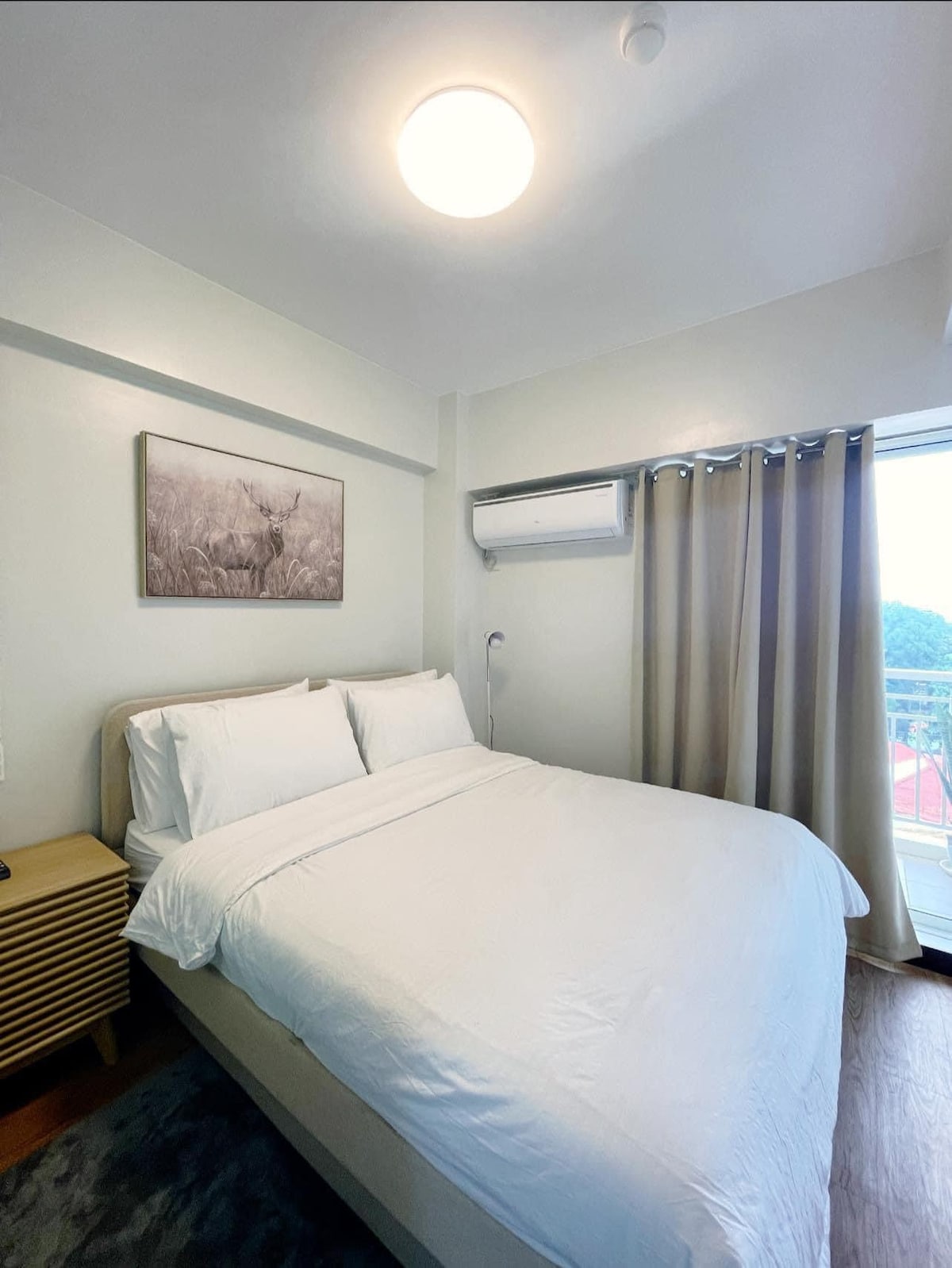 - Across SM City Mall (cinema, supermarket, dept. store, cafes, Anytime Fitness) - 2 Bedrooms with Patios, lush view. - 1 Queen Bed, 1 Full Bed - Up to 1 Extra Mattresses available upon request (Advance Notice pls) - Free Swim Pool Access for 4 Persons (P200/person for excess) (Advance Notice pls) (Pool not available on Mondays) - Pay Parking Available (P200/night. Advance Notice please) - Broadband Wifi - Kitchen - Washing Machine - Self-Check in - Check in: 3PM - Check out: 11AM