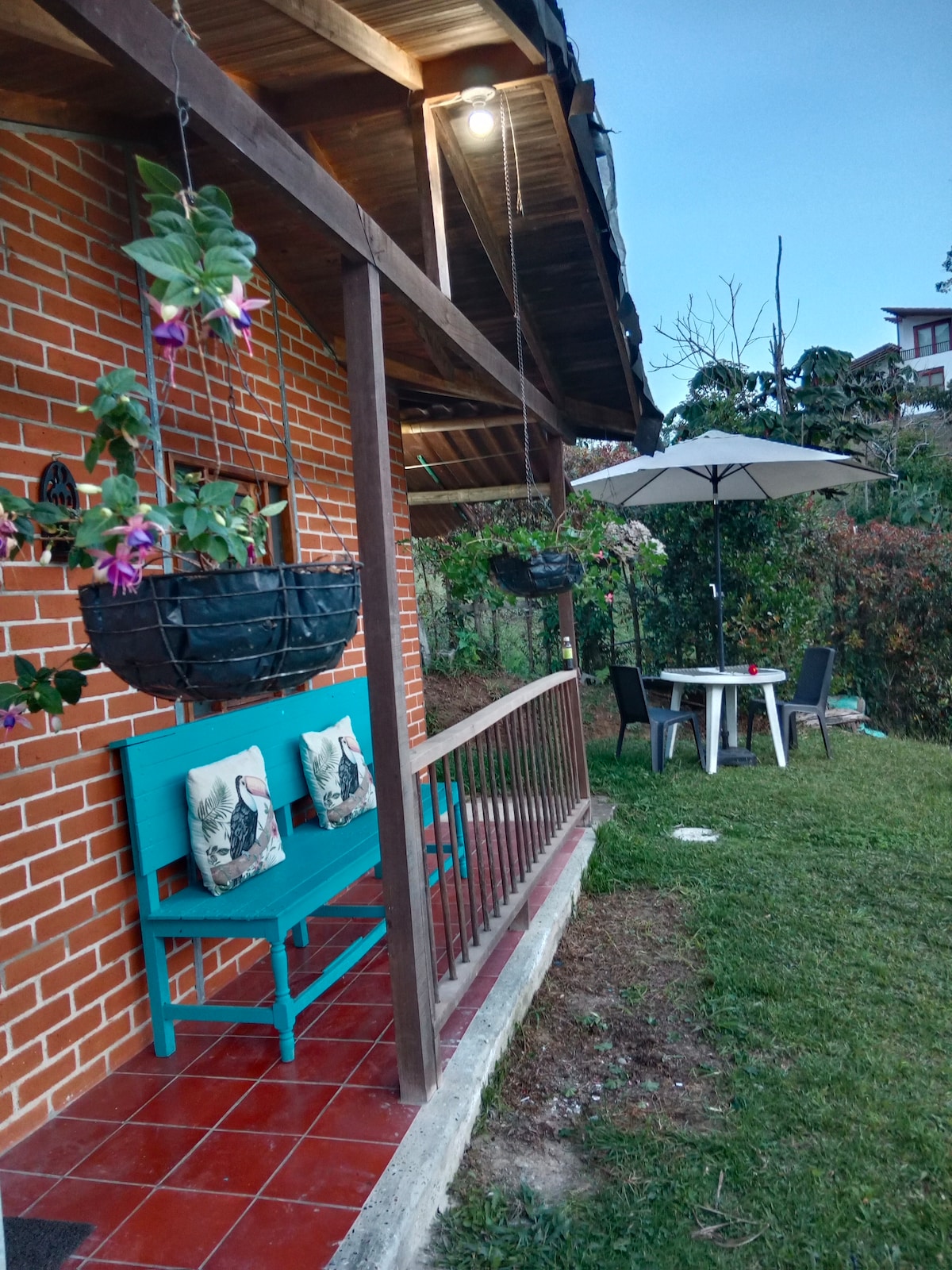 Disfruta de la tranquilidad de este acogedora Cabaña, rodeada de Naturaleza y senderos ecológicos, este lugar te invita a vivir una experiencia inolvidable con tu pareja o familia. El espacio esta diseñado para relajarte y desconectarte del ruido de la ciudad en la fogata. Situado en el corazón de Santa Elena, en la vereda El Llano, a tan solo 5 minutos del parque, a 30 minutos de Medellín, a 15 minutos del aeropuerto José María Córdoba y a 20 minutos del cautivador parque Arví.