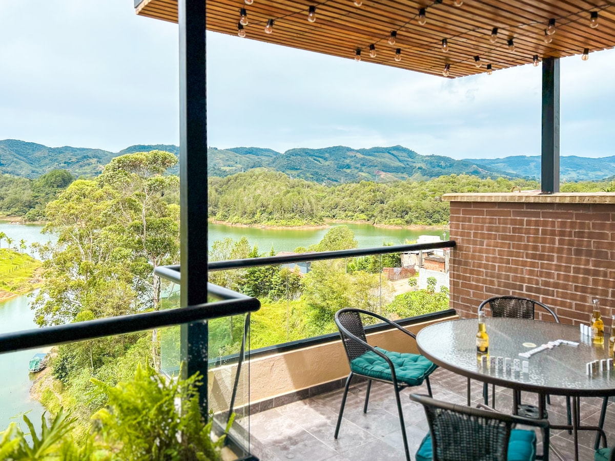 Romantic lakefront retreat for couples with the best views of Guatapé Lake and La Piedra del Peñol. Enjoy a private hot tub, a golden-hour terrace, and mirror-calm mornings. Every detail at Acua Lake House is curated for comfort, calm, and connection—premium linens, warm lighting, and thoughtful touches. Ideal for couples; also suitable for a small family (on request). We host in English.