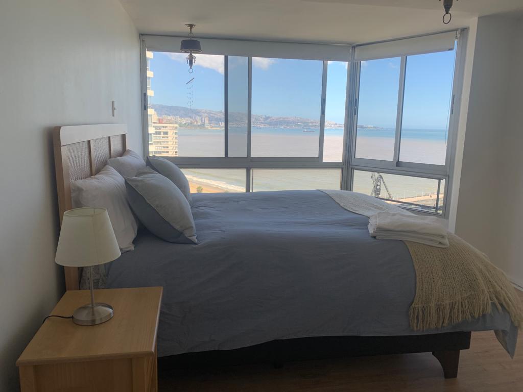 - Dpto con vista despejada a la playa y el mar, primera línea, piso 21 - Frente al muelle Vergara - Estacionamiento privado, 2TV smartv y Wifi - Para 4 personas, 2 dormitorios; ambos con cama de 2 plazas - Dos baños completos - Living comedor amplio, terraza con vista a la costanera y el mar - Cocina americana - Conserjería 24 horas - Piscina, juegos, cancha de tenis, lavandería, quincho - Paseo peatonal, restaurantes, pubs, supermercado, mall Marina Arauco, locomoción, casino, feria artesanal