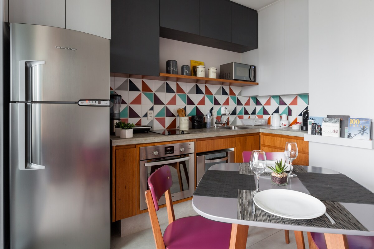 Welcome and make yourselves at home. The apartment is brand new, designed especially for you and has impeccable decor, very practical for everyday life. The view is spectacular! The apartment is on the 28th floor. We are in an excellent location in São Paulo, in the Pinheiros neighborhood, with restaurants, supermarkets and bakeries very close by. It's 40m2 (430 sqft) with 1 bedroom and 1 bathroom. Walking distance from Fradique Coutinho subway station (just 2 blocks).