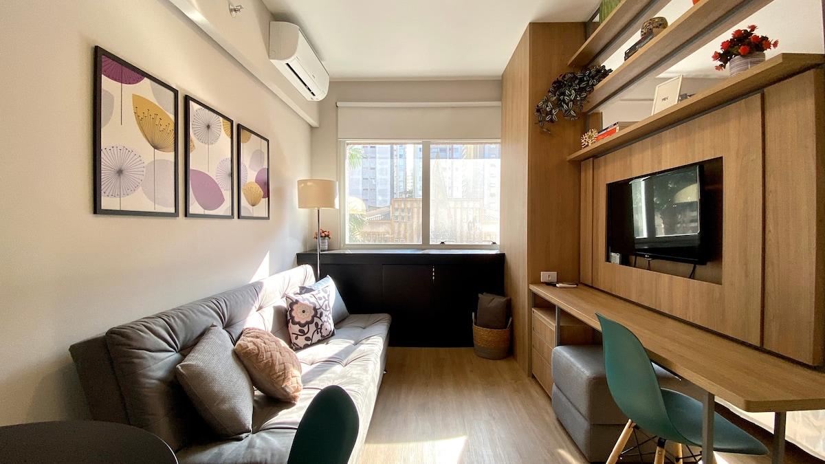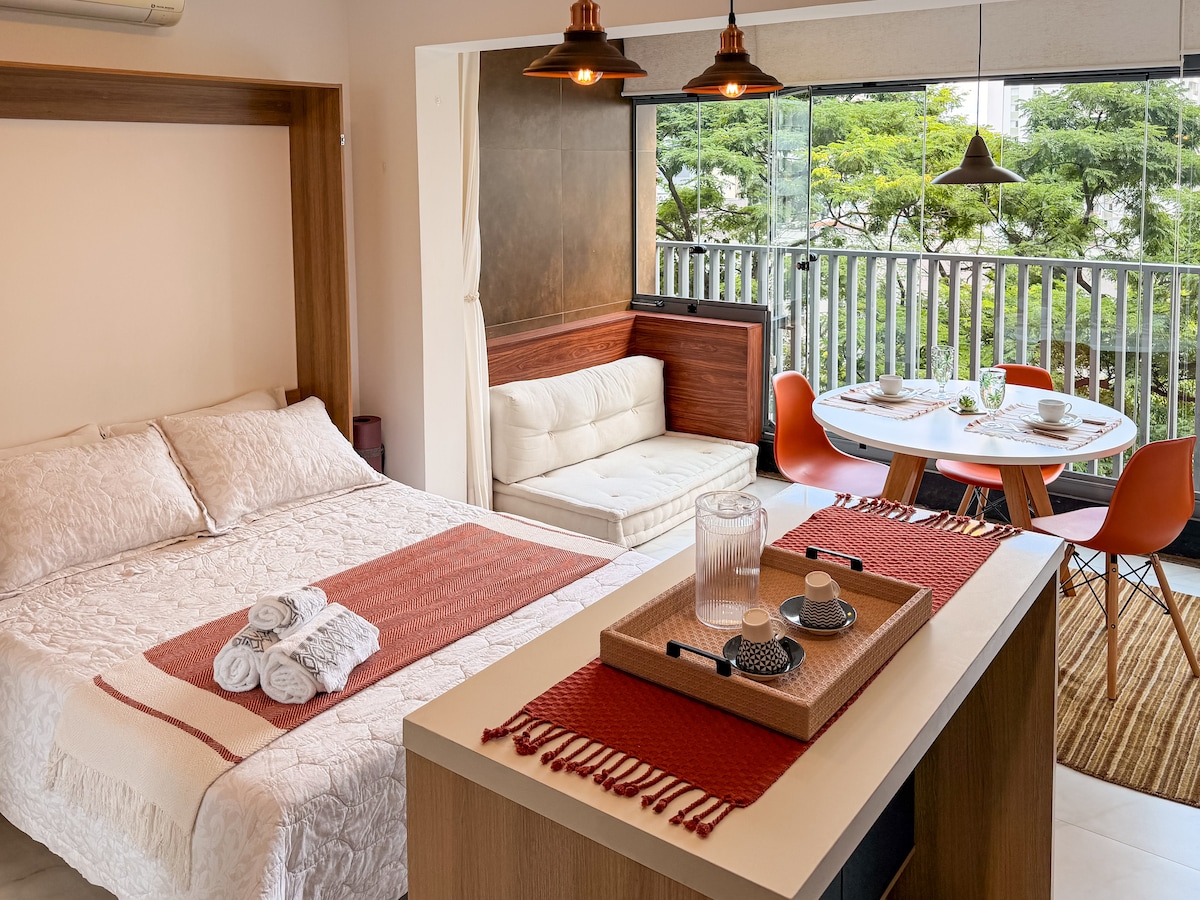 Studio novo e aconchegante no coração de São Paulo, prédio recém entregue com tudo novo! Cama de casal, cortina blackout, secador de cabelo, airfryer, panela de arroz, máquina de café e todos os utensílios necessários para uma ótima e confortável hospedagem. Prédio super bem localizado, 5min a pé da Avenida Paulista/ muito próximo aos metrôs da Avenida Paulista e Consolação. Pets são muito bem-vindos :)