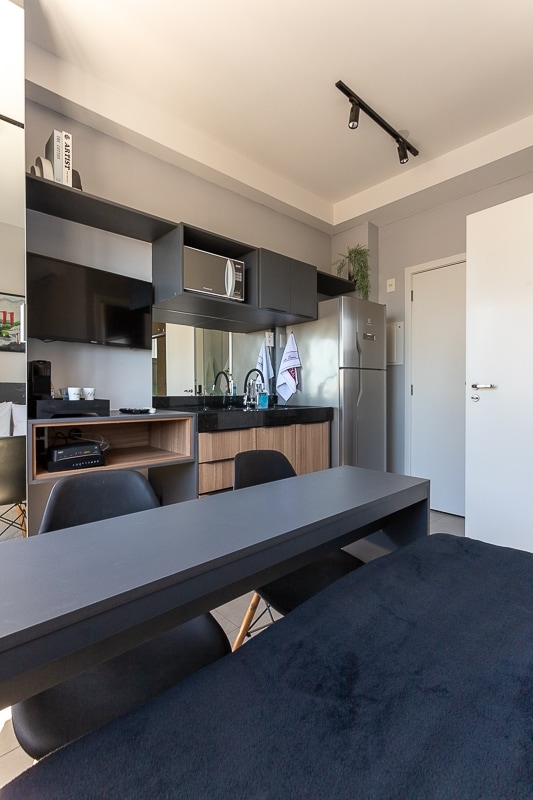 Apto para até 3 pessoas ( o sofá na sala, é sofá cama. Porém,quando aberto, a sala fica apertado ). Próximo à bons restaurantes , perto da Oscar Freire . Bairro Jardins. No ultimo andar,tem uma pequena academia, piscina coberta e minimercado. Apto compacto ,mas bem equipado. Na esquina, tem um supermercado Carrefour, dentro do shopping Jardim Pamplona. No apto, tem um balcão para comer. Não há uma mesa para trabalho. Porém, no último andar, no mercadinho, tem mesas que podem usar.