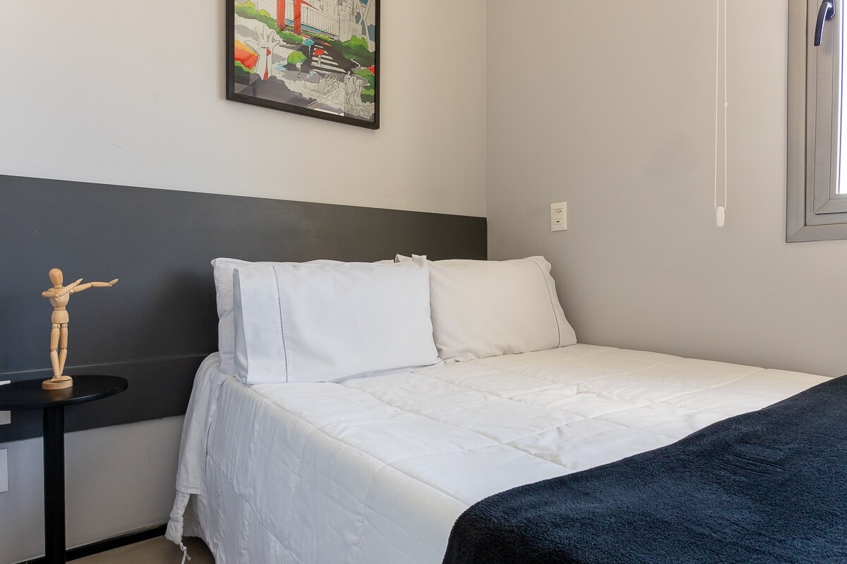 Conforto e praticidade a uma quadra da Avenida Paulista. Nosso flat combina o aconchego de um lar com a praticidade de um hotel, oferecendo tudo o que você precisa para uma estadia confortável. O espaço, de 24m², une design minimalista e funcionalidade. Oferecemos internet rápida, enxovais de qualidade, higienização cuidadosa antes do check-in e vaga no estacionamento. Tudo para você se sentir em casa.