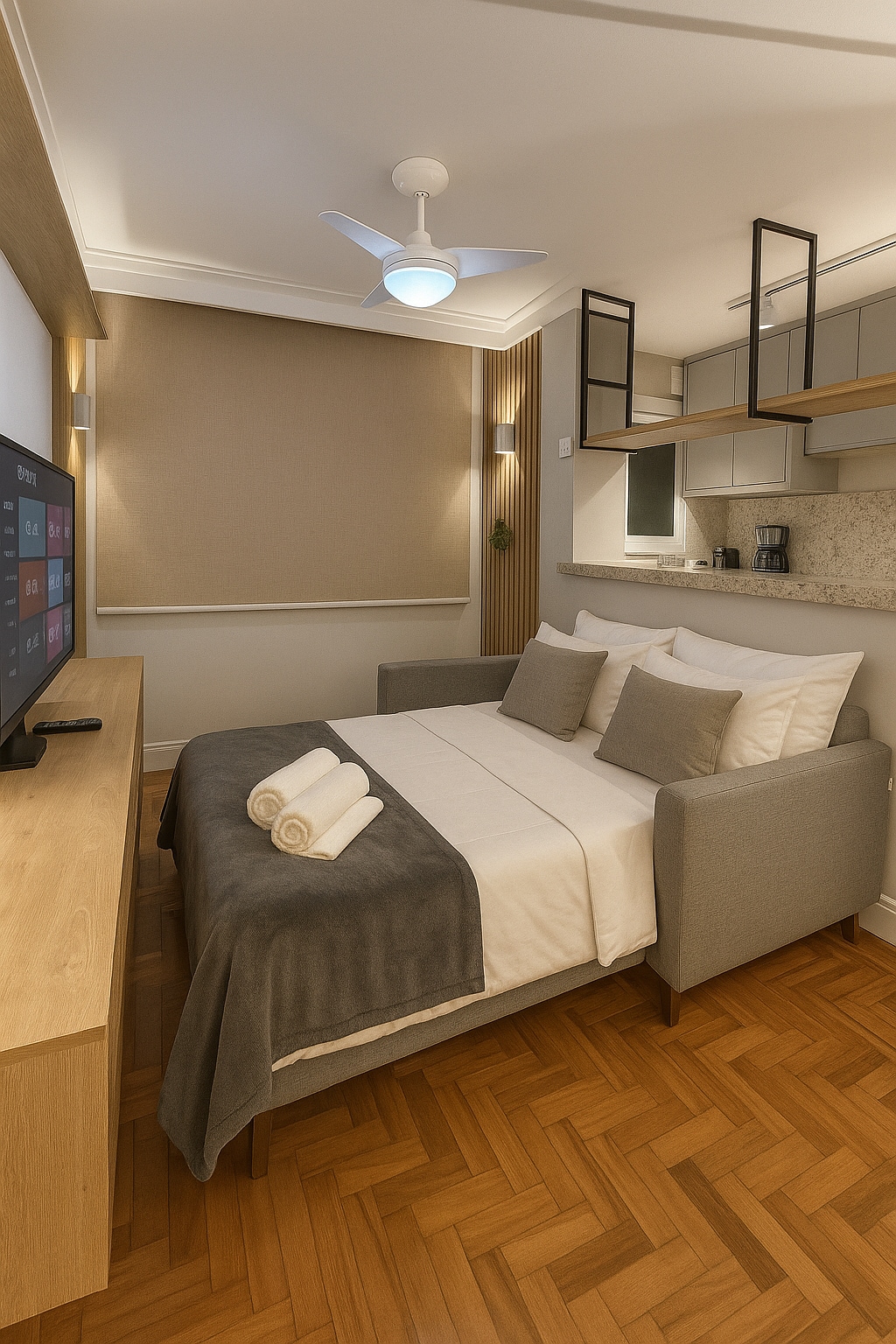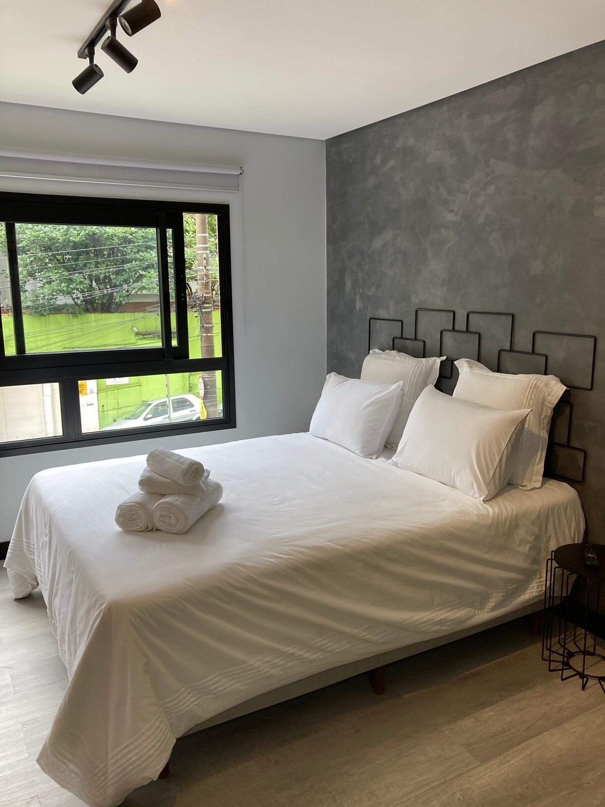 Conforto e praticidade a uma quadra da Avenida Paulista. Nosso flat combina o aconchego de um lar com a praticidade de um hotel, oferecendo tudo o que você precisa para uma estadia confortável. O espaço, de 24m², une design minimalista e funcionalidade. Oferecemos internet rápida, enxovais de qualidade, higienização cuidadosa antes do check-in e vaga no estacionamento. Tudo para você se sentir em casa.