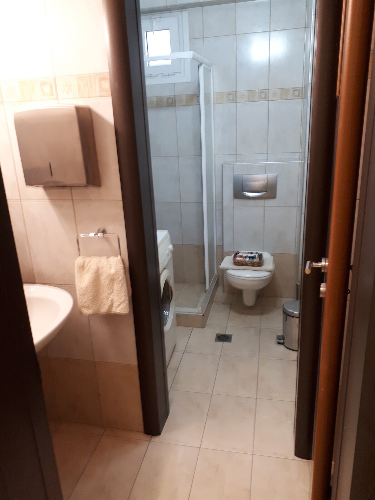 Πρόκειται για μια γκαρσονιέρα στο ισόγειο μια τριώροφης πολυκατοικίας, λίγο έξω από το κέντρο της πόλης, ιδανική για δύο άτομα και ένα παιδί ή και για τρίτο άτομο. Ακριβώς έξω από το διαμέρισμα, μπορείτε να παρκάρετε άνετα όλο το 24ωρο. It's a small apartment just outside the center of the town, perfect for a couple and their child or even for three adults. You can easily park your car just outside the apartment anytime you need to.