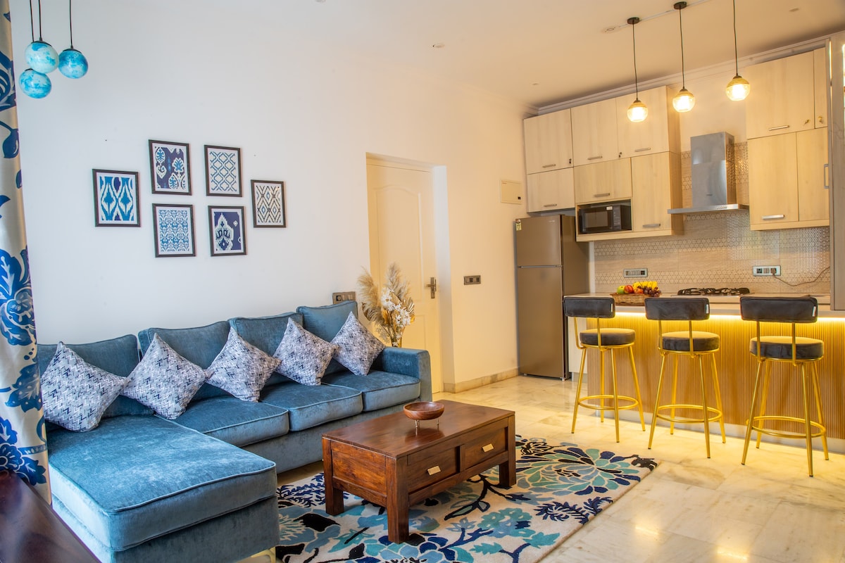 Modern Boho Apartment | Minutes from North Goa's Beaches.A cosy, fully furnished 1BHK retreat perfect for couples, friends, or small families. Highlights: - Stylish boho interiors with a warm vibe - AC in bedroom & living room for comfort - Smart TV + High-speed WiFi - Equipped kitchen with RO water, cooktop, fridge & washing machine - Shared swimming pool (9 AM–6 PM | swimwear mandatory - On-site gym available as a paid facility - 24/7 security for peace of mind - Free Parking