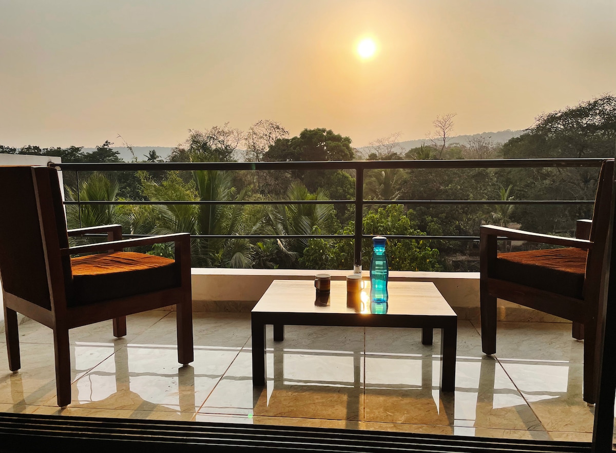 10分钟到安朱纳(Anjuna)| 2卧室|大型泳池景观阳台