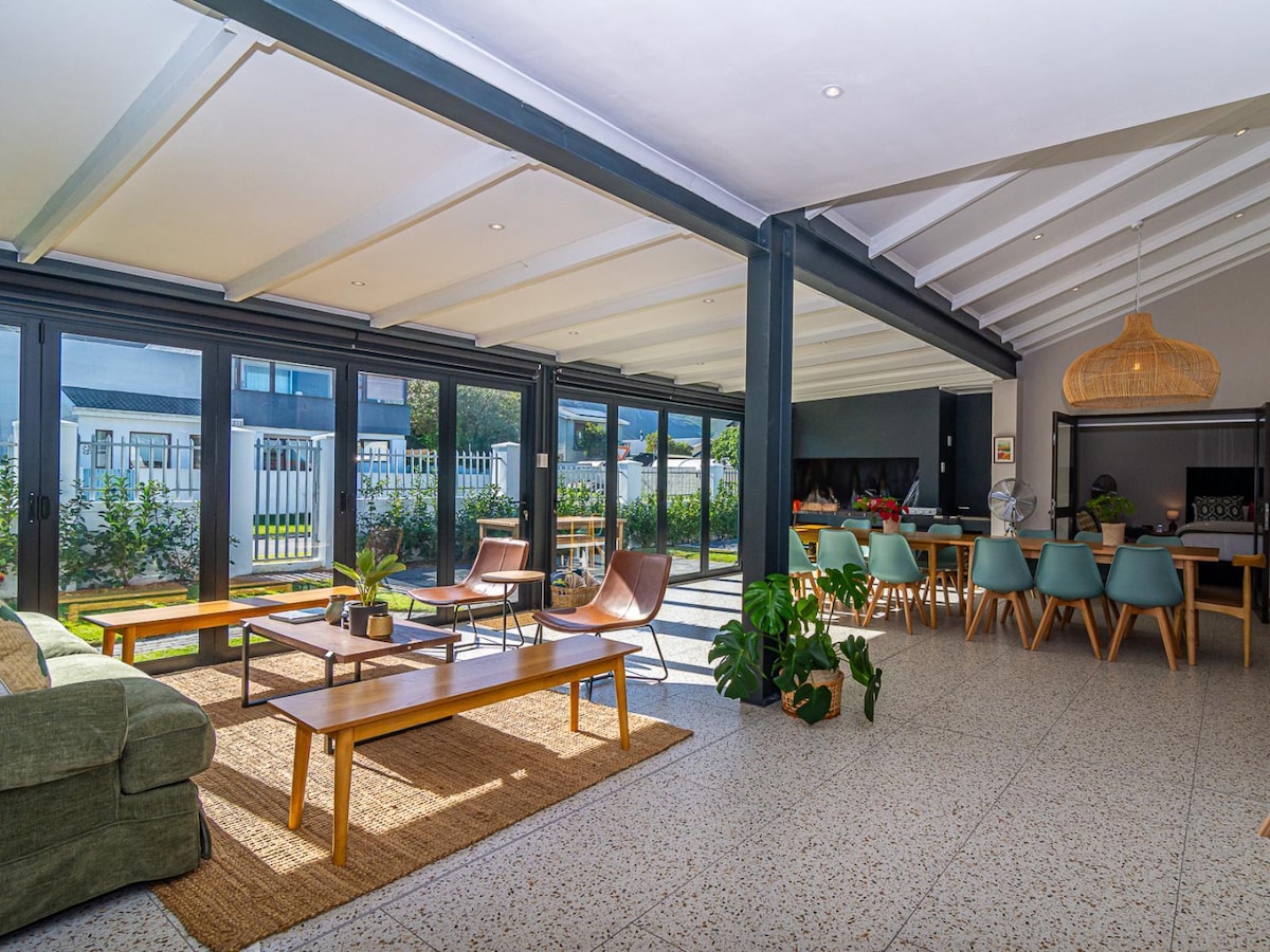 Relax with the whole family at this peaceful modern twist on the traditional fisherman's cottage. Recently installed solar and inverter backup system will ensure a holiday from loadshedding as well. Walking distance from the captivating cliff paths and picturesque Breakfast Bay beach. Out of the hustle and bustle of town, yet close enough to get all the essentials with only a short drive to Hermanus central. Offers the best of both mountain and sea views.