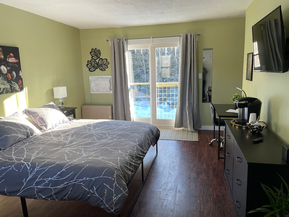 Named after a mountain south of Bristol, which is visible from your window, this mini-suite features a queen size bed, private bathroom, sitting area, desk, and kitchenette, free WiFi, A/C window unit, flat screen TV and a convenient walk to everything on Main Street. This first floor suite is our only dog-friendly room, and conveniently located steps away from delicious restaurants, drinks, a bakery, and shops! Come explore all that Vermont offers during your stay at the Bristol Suites.