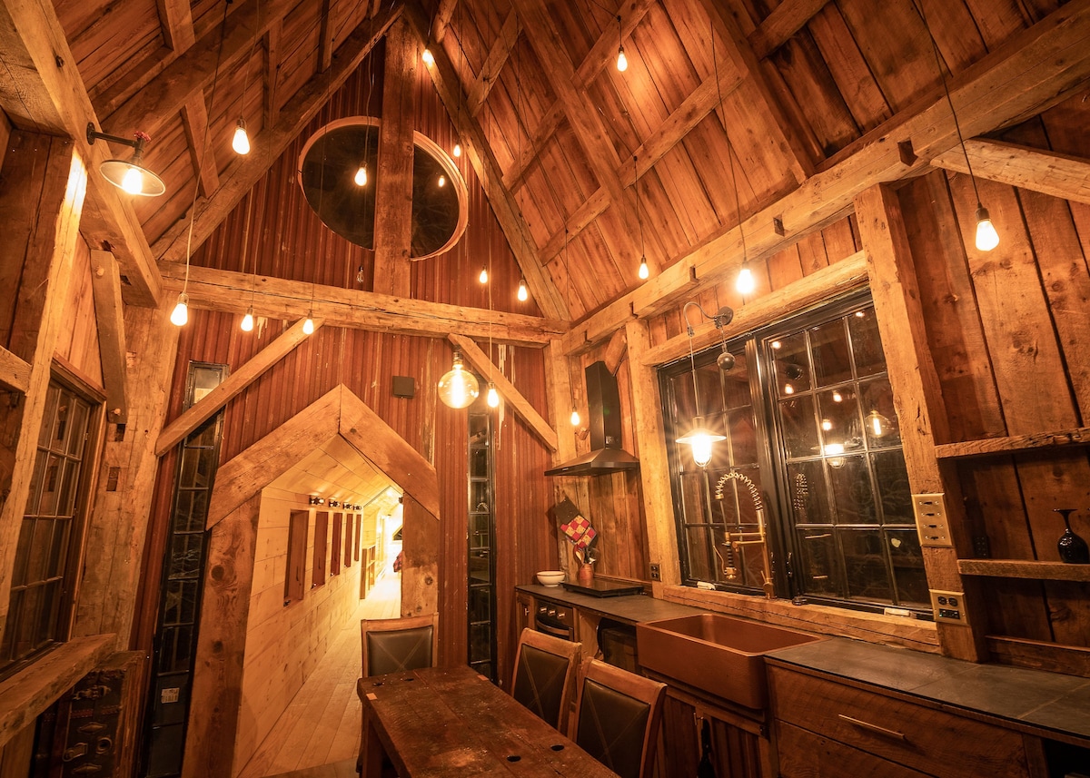 Welcome to our enchanting treehouse! We crafted this unique and magic inspired dwelling for any admirer of a beloved wizarding world, or anyone who appreciates isolation in a fun space. As you cross the elevated walkways, you'll feel like you're entering a wizards treehome in the forest. The 1,100 sqft treehouse is nestled in and among trees, providing a magical and secluded escape from life. Have a question or hesitations? reach out check out our other listings for glamping style treehouses
